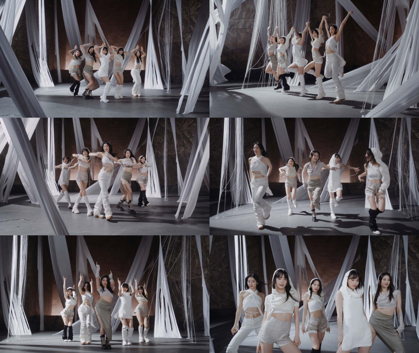 今回の映像では、白い布がかかった神秘的なセットで繰り広げられるLE SSERAFIMのパフォーマンスにフォーカス。