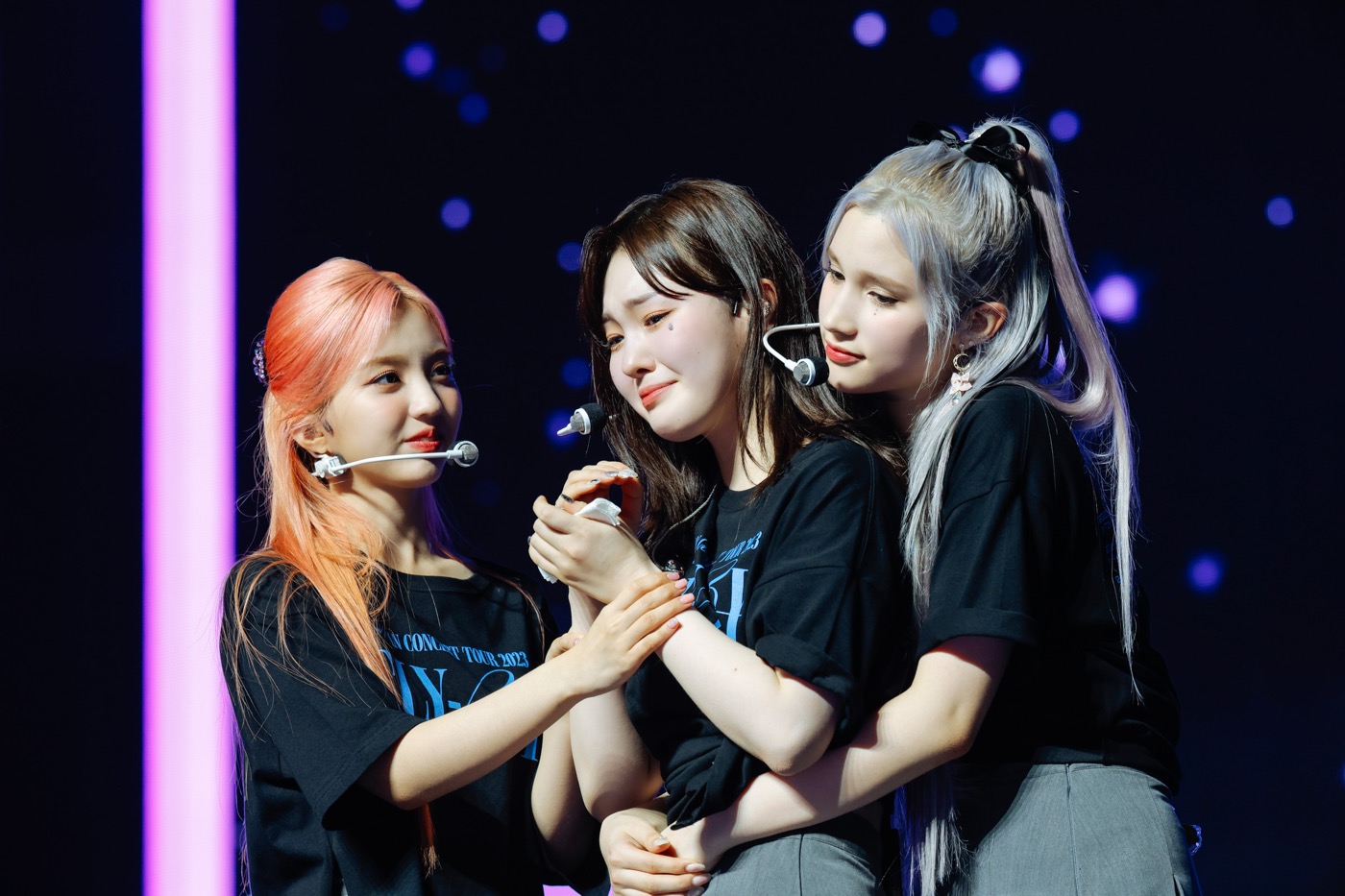 そして、公演終盤、集合撮影のためにメンバーが観客に背を向けたあとに振り返ると「Kep1er初ツアーおめでとう!」と書かれたスローガンを持った1万人のファンの姿が。会場一丸となってKep1erの初ツアーを祝う光景が広がっており、このサプライズにKep1erのメンバーも思わず感涙。