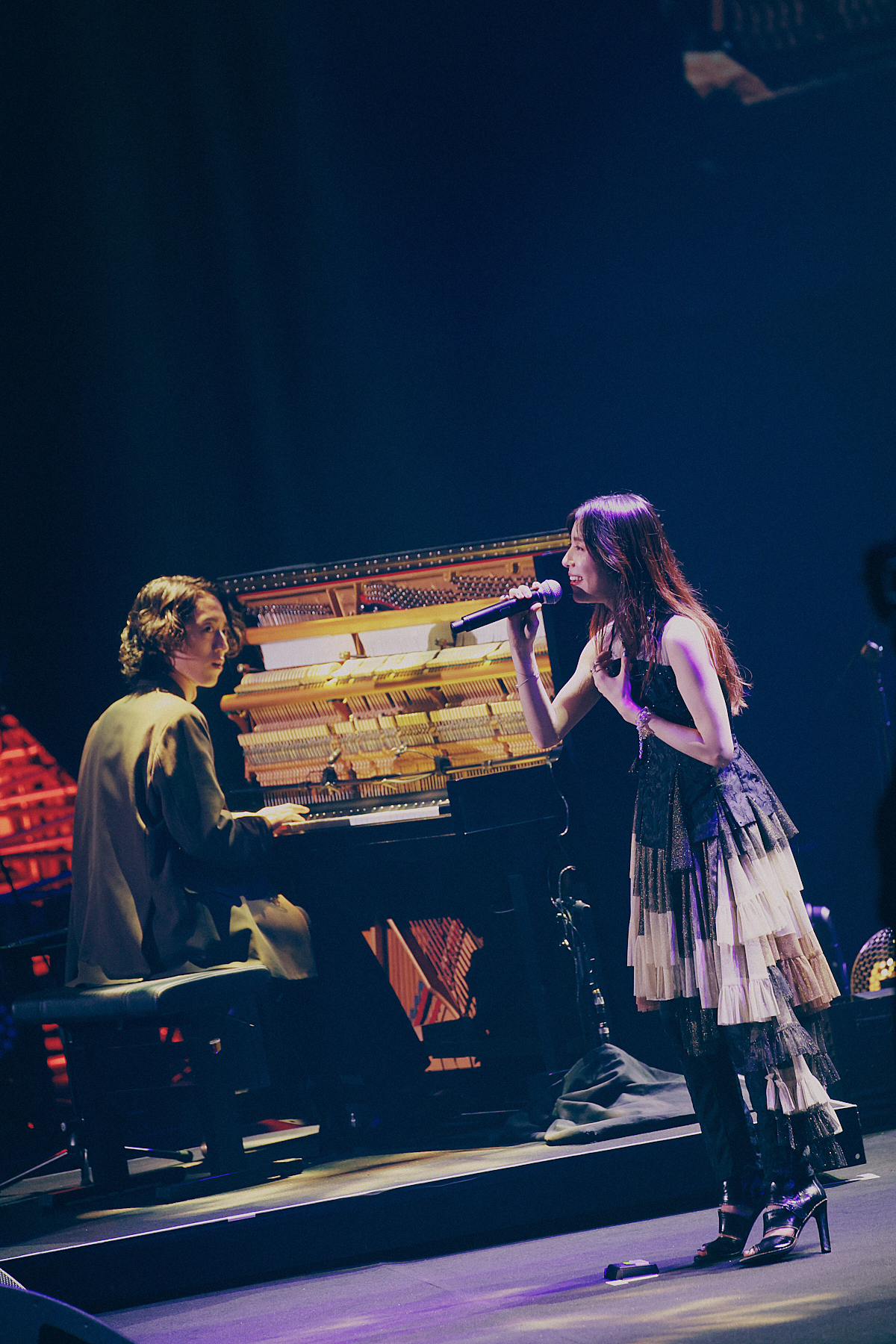 公演1日目のスペシャルゲストは、『THE FIRST TAKE』でコラボ出演し話題となったピアニストのCateenこと角野隼斗が登場し「One Reason」「Ordinary days」をアップライトピアノのみで披露。ピアノの音とmiletの歌声のみという緊張感溢れるこのサプライズ披露に集まったファンは一音足らずとも聞き逃すまいと、音に没頭するよう聞き惚れ感涙する姿が多々見られた。