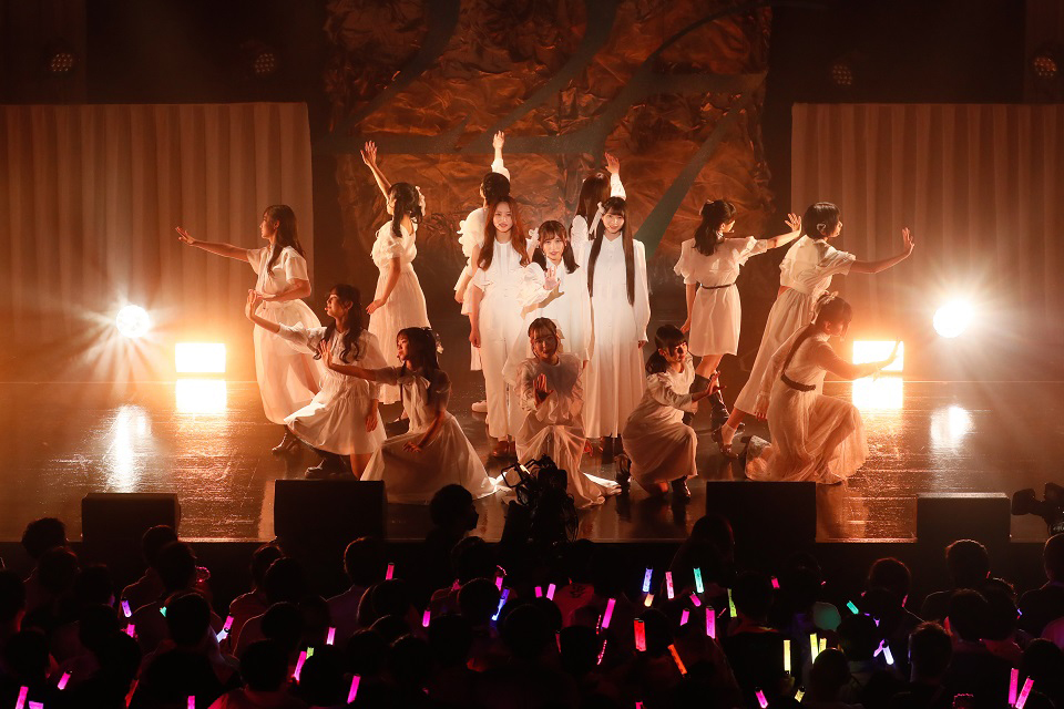 ラストナンバーは、宮瀬を象徴する楽曲として育った「シャンプーの匂いがした」。桜が満開になるようにピンクのライブTシャツを着たメンバーたちが宮瀬のもとへ集まってくる。「先輩が辞めるって」という歌い出しは、あまりにせつない。だが、メンバーたちの瞳は涙に濡れながらも、ただただ「大好き」な気持ちで笑顔に輝く。あえて、ライブ内で個々にはなむけの言葉を送ることはなかったが、歌声、ダンス、そして交わし合う目と目が思いを伝えあっていた。
