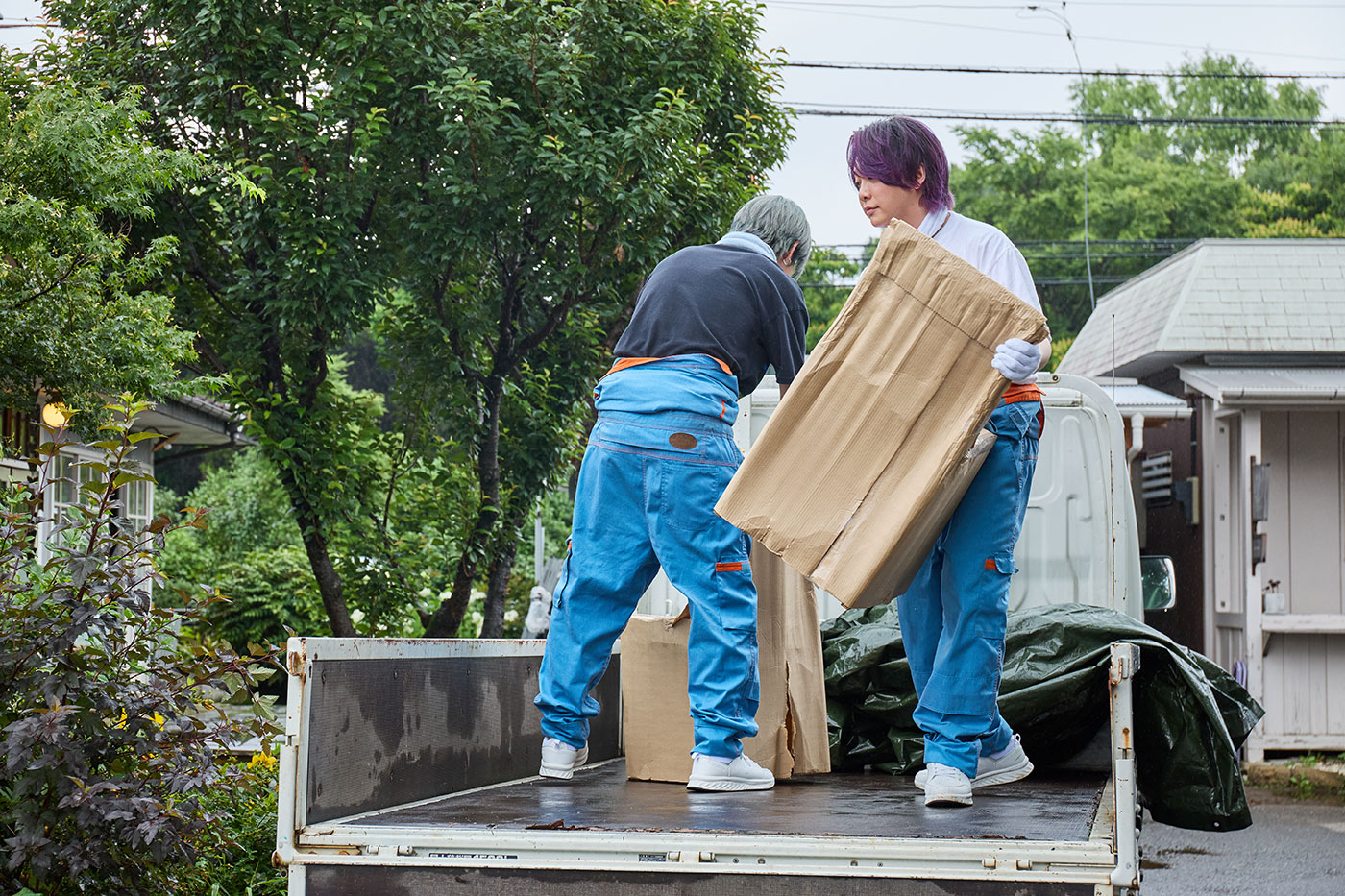 Mrs. GREEN APPLEが出演するのは、清野菜名演じる主人公の岸田サチが、仲間たちと開店に向け準備をしているカフェに、椅子やテーブルなどのインテリアが搬入される場面。
