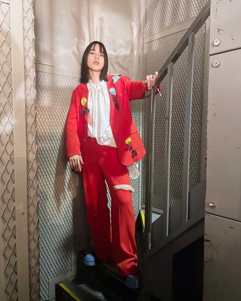 ブログでは「Beautiful StarsのMVの時」とつづり、黄色や水色のバラなどのコサージュがついた赤のセットアップ姿のオフショットを複数枚公開し、「撮影楽しかった~」と振り返った。