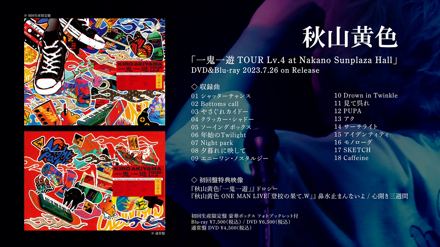秋山黄色が、自身初となるライブ映像作品『一鬼一遊TOUR Lv.4 at Nakano Sunplaza Hall』を7月26日にリリースする。