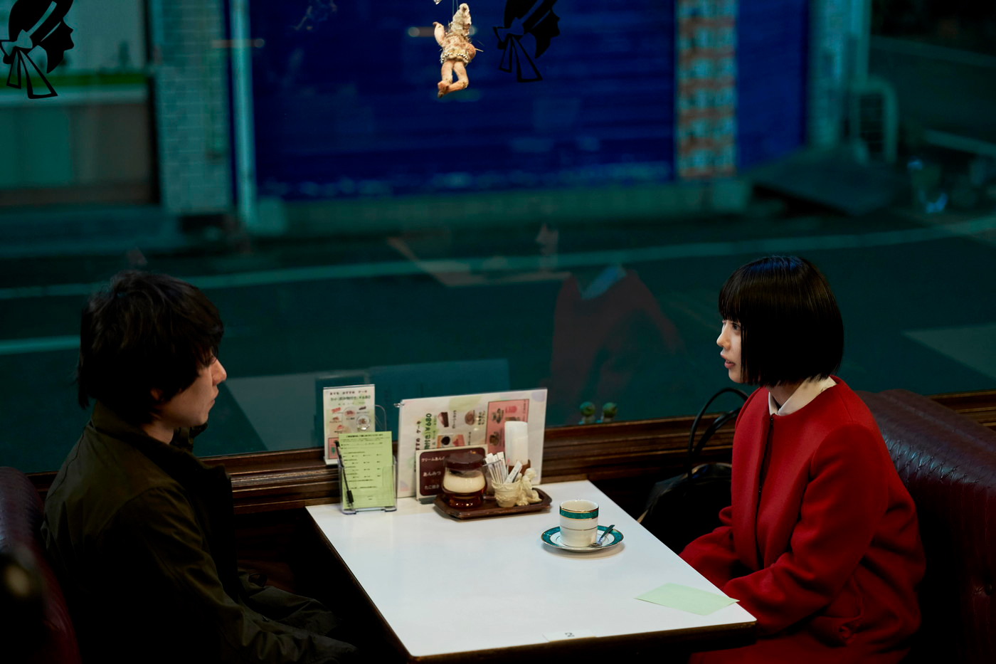 切なくも儚げに正面を見つめるあのと、彼女に視線を向ける落合モトキの表情が印象的だ。