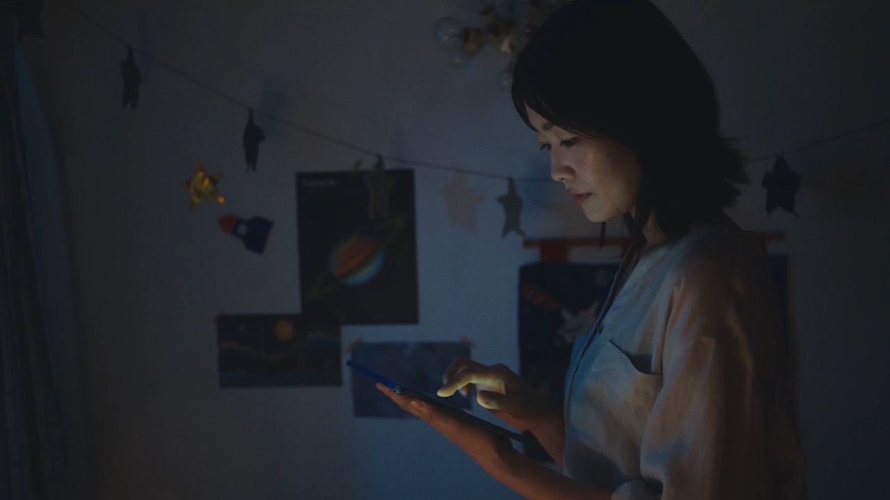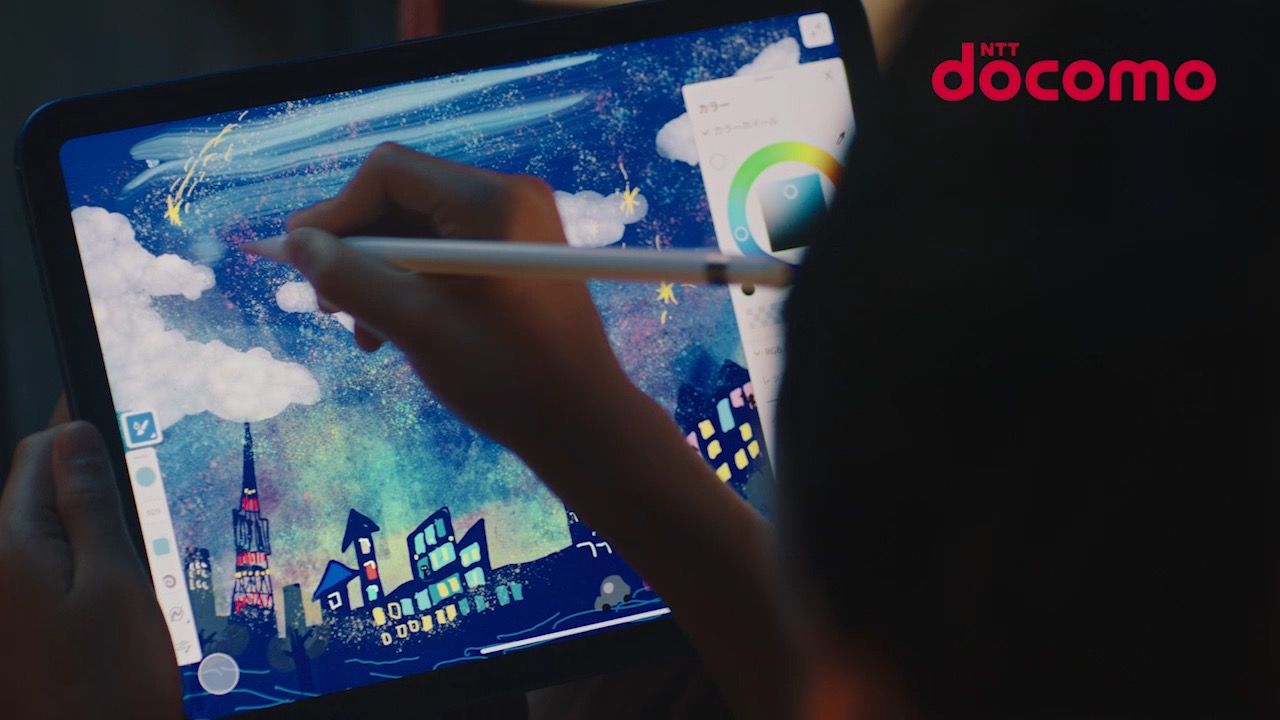 『ドコモ未来ミュージアム』は、子どもたちの未来や夢を応援する創作絵画コンクール。WEB CMでは、子どもが持つ自由な発想と無限の想像力を、ひと組の親子のある夏の一夜を通して描いている。