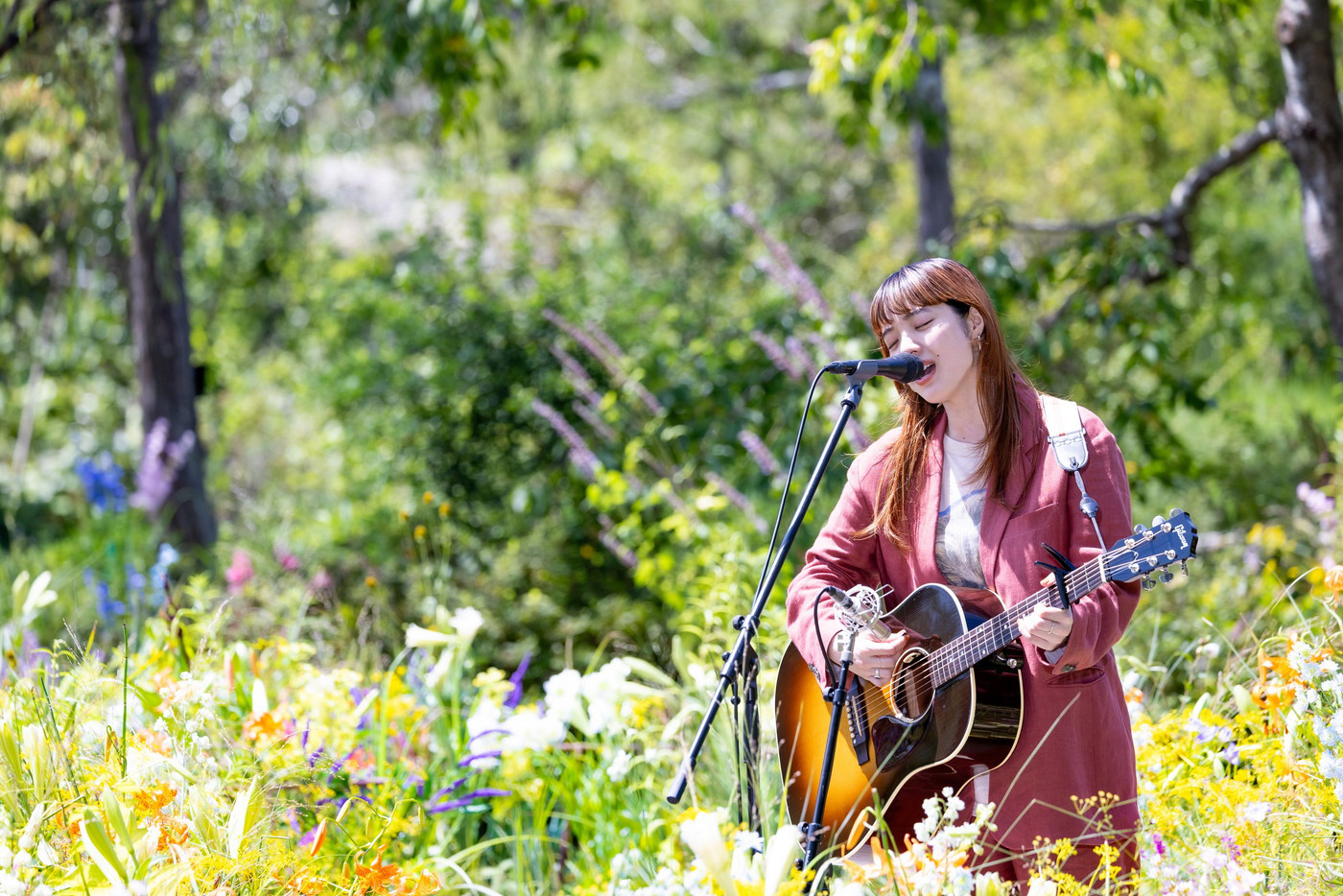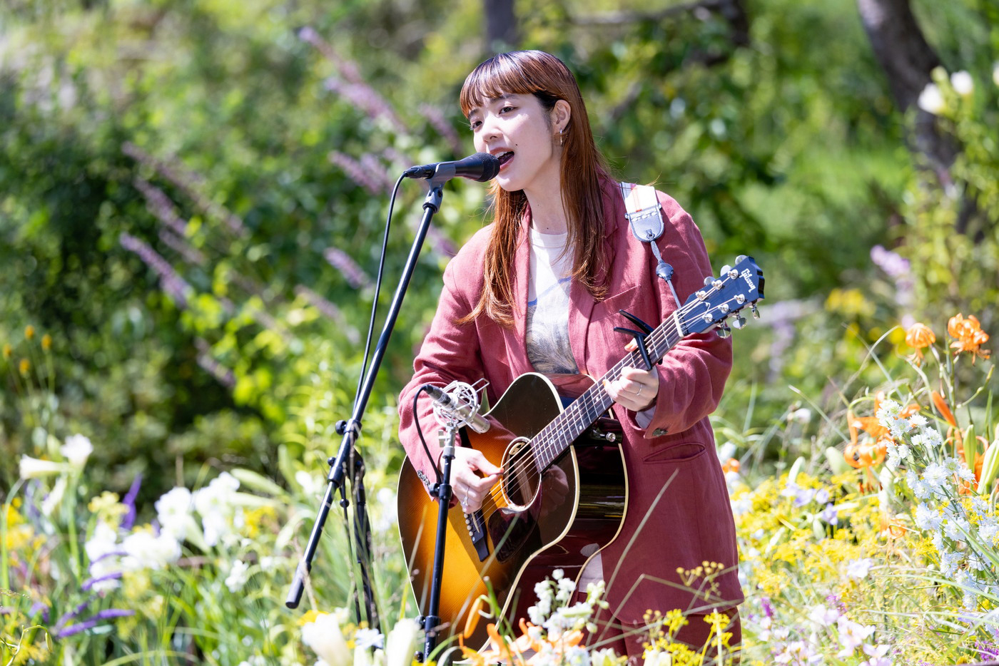 さらに今回は、この曲を弾き語りバージョンで初披露。ドラマゆかりの地で、色とりどりの植物をたっぷりと感じながらのパフォーマンスとなった。