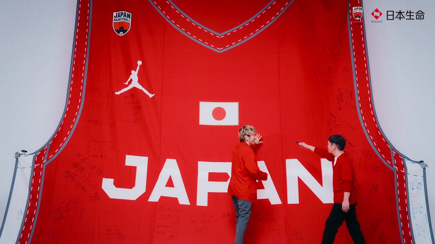 そこから、全国から老若男女たくさんのブースターからの日本各地で撮影されたバスケ男子日本代表選手たちへの応援メッセージへ。最後には“日本一丸”の文字とともに、ゆずのふたりと様々なメッセージが書かれたジャンボユニフォームが映し出され、日本が一丸になって集められた応援がひとつに。