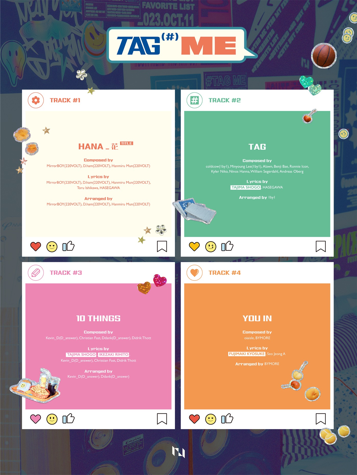 公開されたトラックリストは合計4曲。メンバーの池崎理人(崎は、たつさきが正式表記)が「10 THINGS」、田島将吾が「TAG」「10 THINGS」、藤牧京介が「YOU IN」の作詞にそれぞれ参加した。