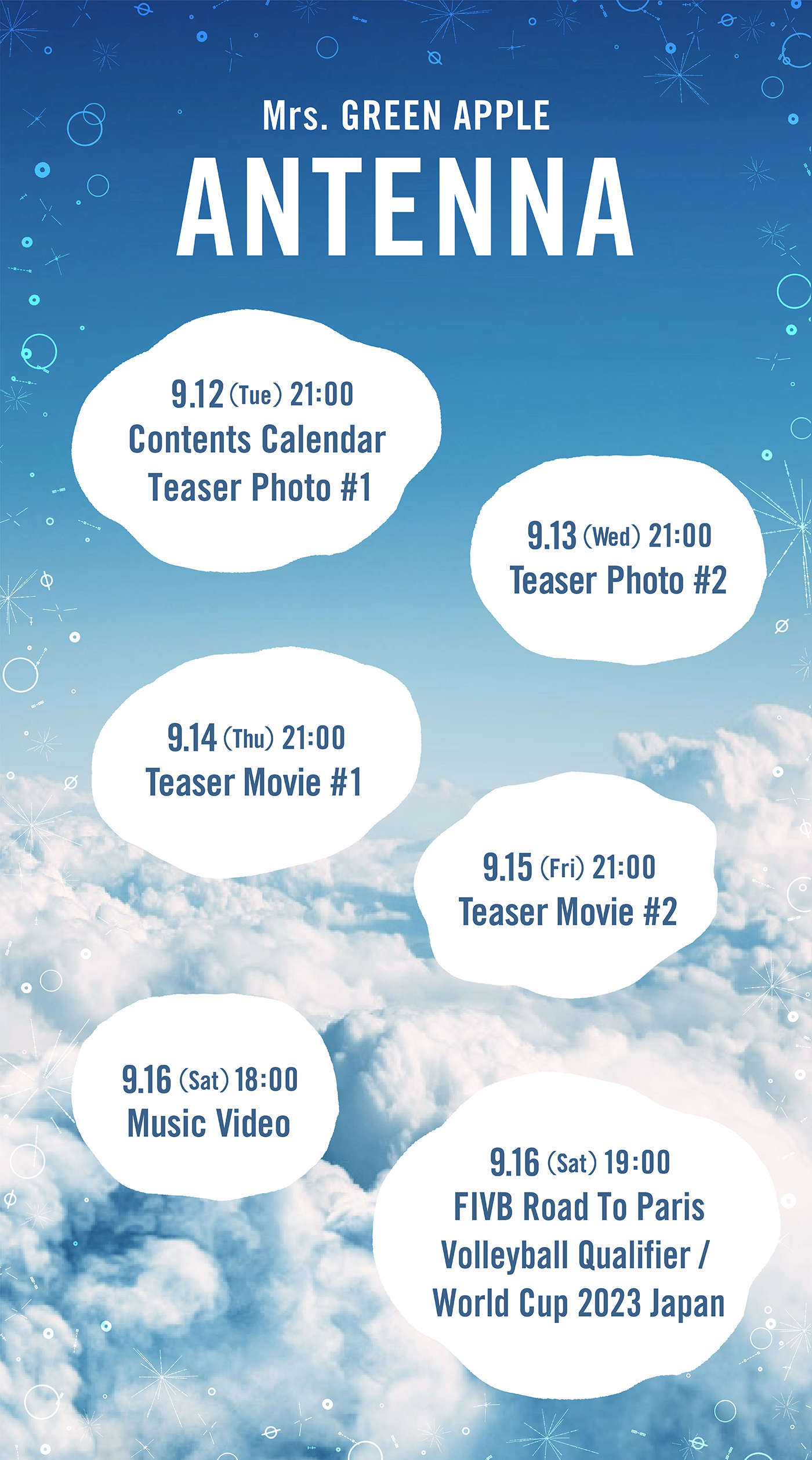 「ANTENNA」は、7月5日にリリースされたミセスの5枚目アルバムのタイトルトラックで、9月16日に開幕する『FIVB パリ五輪予選/ワールドカップバレー2023』のフジテレビ系バレーボール日本代表応援ソング。