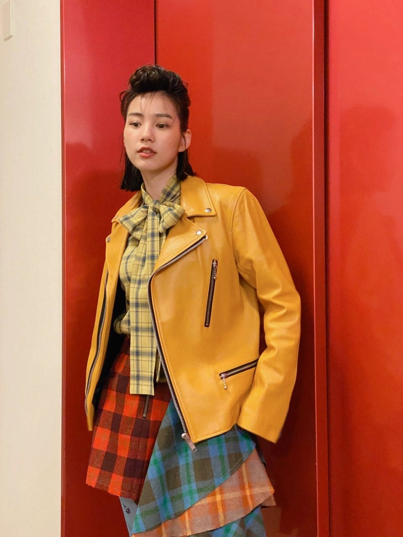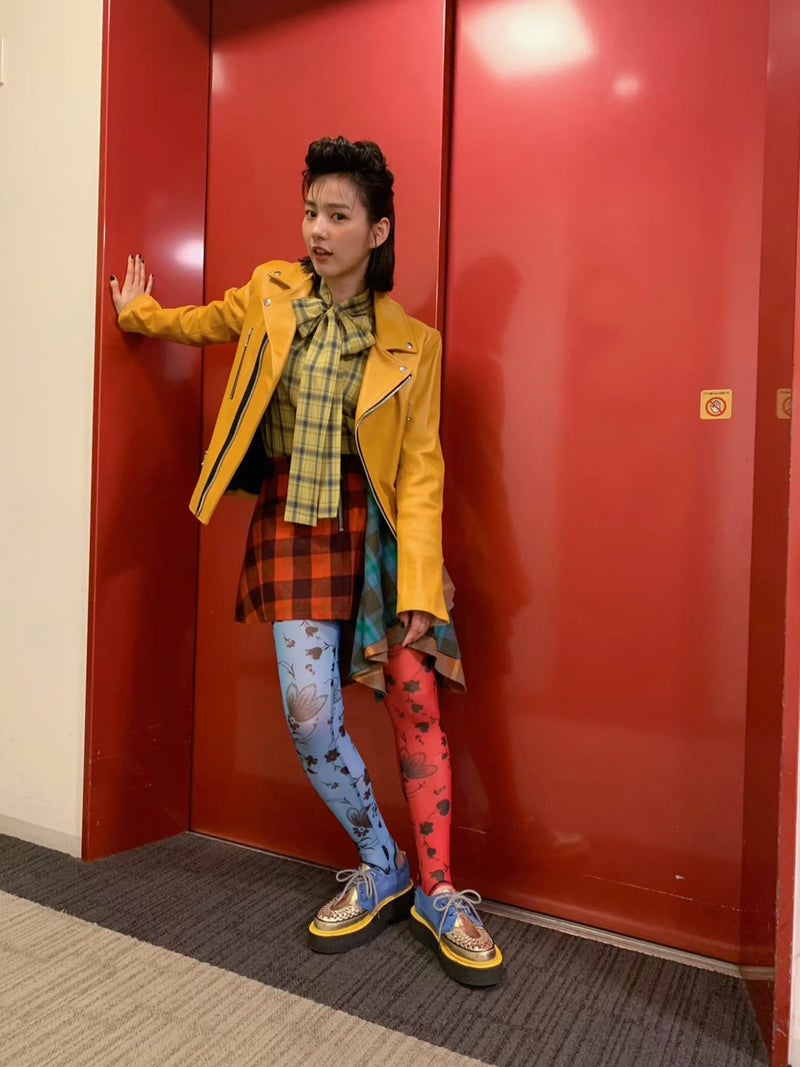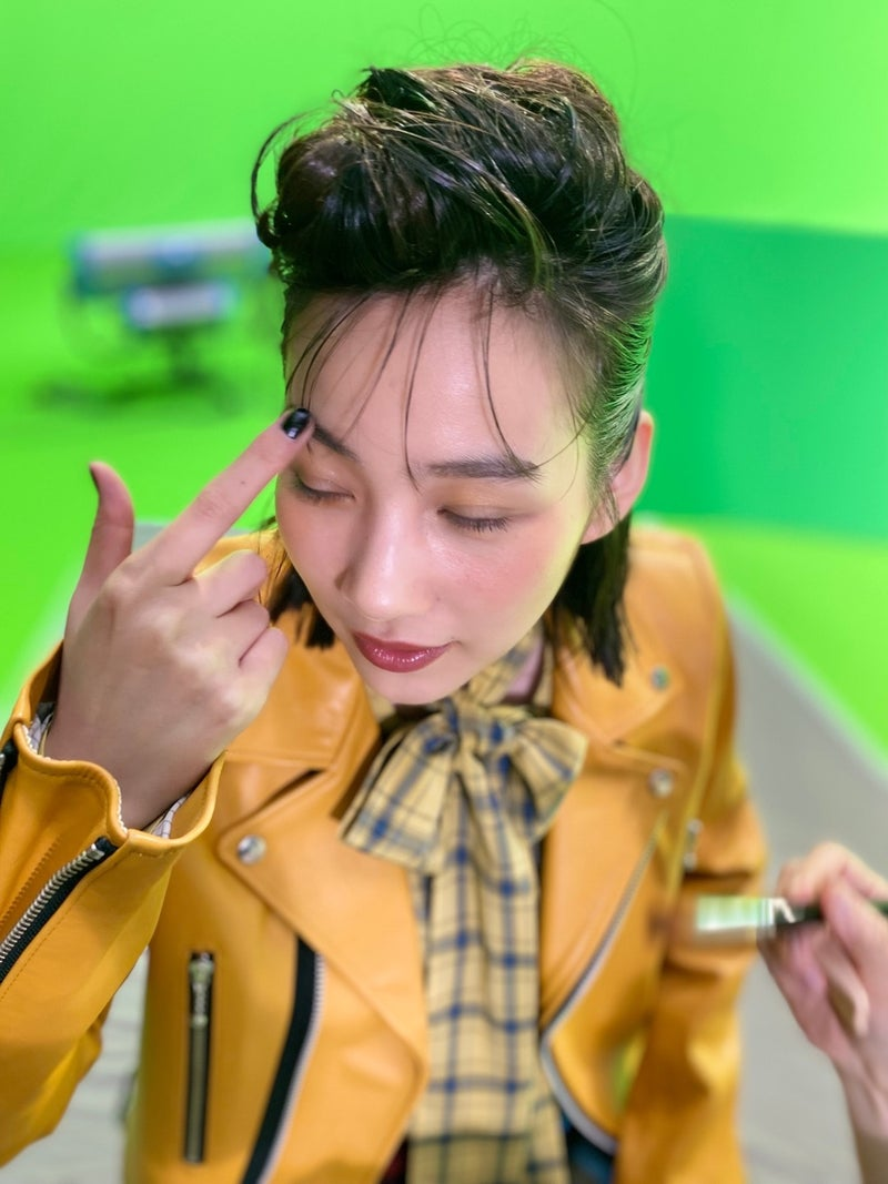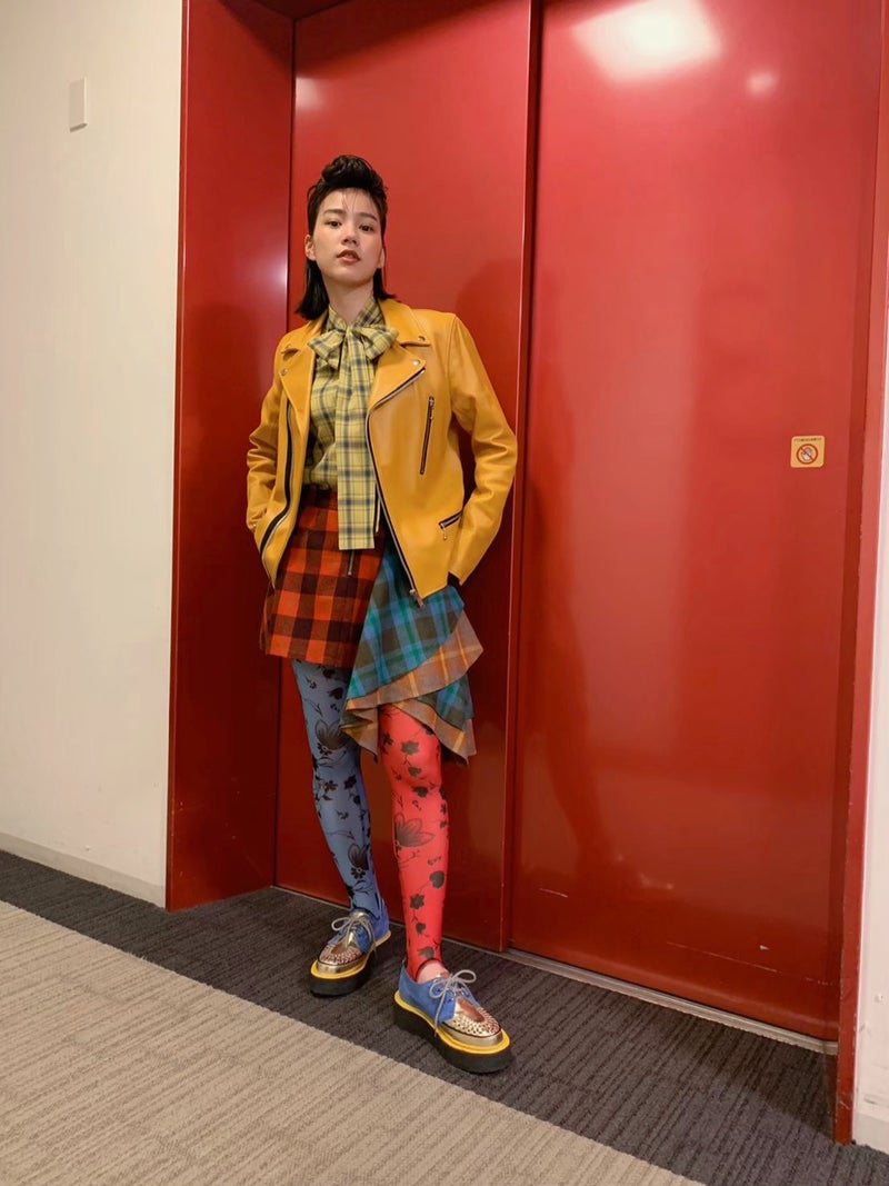 リーゼント風に決めた髪型に、濃厚バターカラーのような濃い黄色革ジャン、赤や黄、青のチェック柄など、ロックテイストな衣装姿でメイクしながらカメラをキリっと見つめるオフショットや、キメポーズの全身ショットなど複数枚公開した。