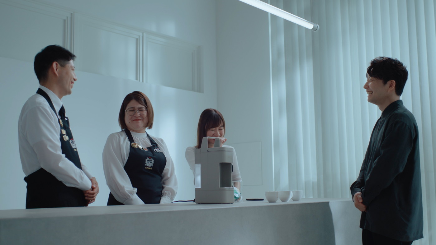 アプリを通じて「DRIP POD YOUBI」をコントロールすることで、抽出工程に変化を加え、多様なコーヒーの味わいを実現できることに驚く、星野の表情にも注目だ。