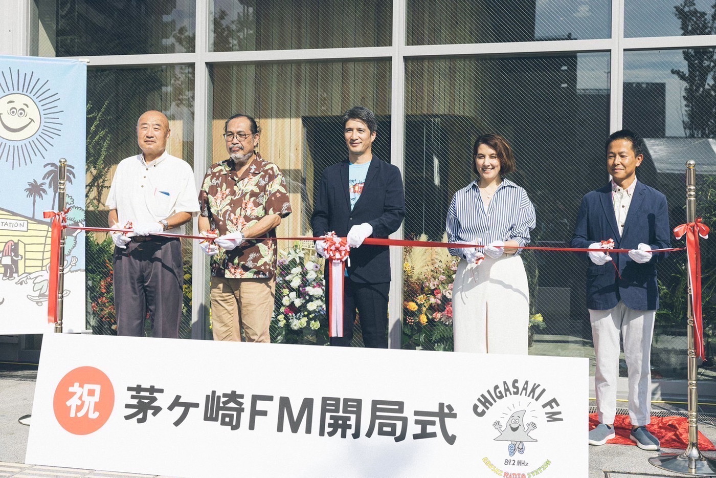 当日は、茅ヶ崎市役所前広場に完成したばかりの茅ヶ崎FMスタジオ with東横INN前で、9時にオーブニングセレモニーを実施。テープカットに参加したのは、この日の開局特番のメインパーソナリティを務めた元フジテレビアナウンサーの政井マヤと音楽評論家の宮治淳一、さらに夕方、サザンオールスターズの『茅ヶ崎ライブ2023』会場周辺から興奮に満ちた現地の空気を伝えた瀧口健太郎。そして、茅ヶ崎エフエム社長、茅ヶ崎観光協会事務局長、茅ヶ崎商店会連合会会長と、開局実現に向けて力を尽くした面々が勢ぞろいした。
