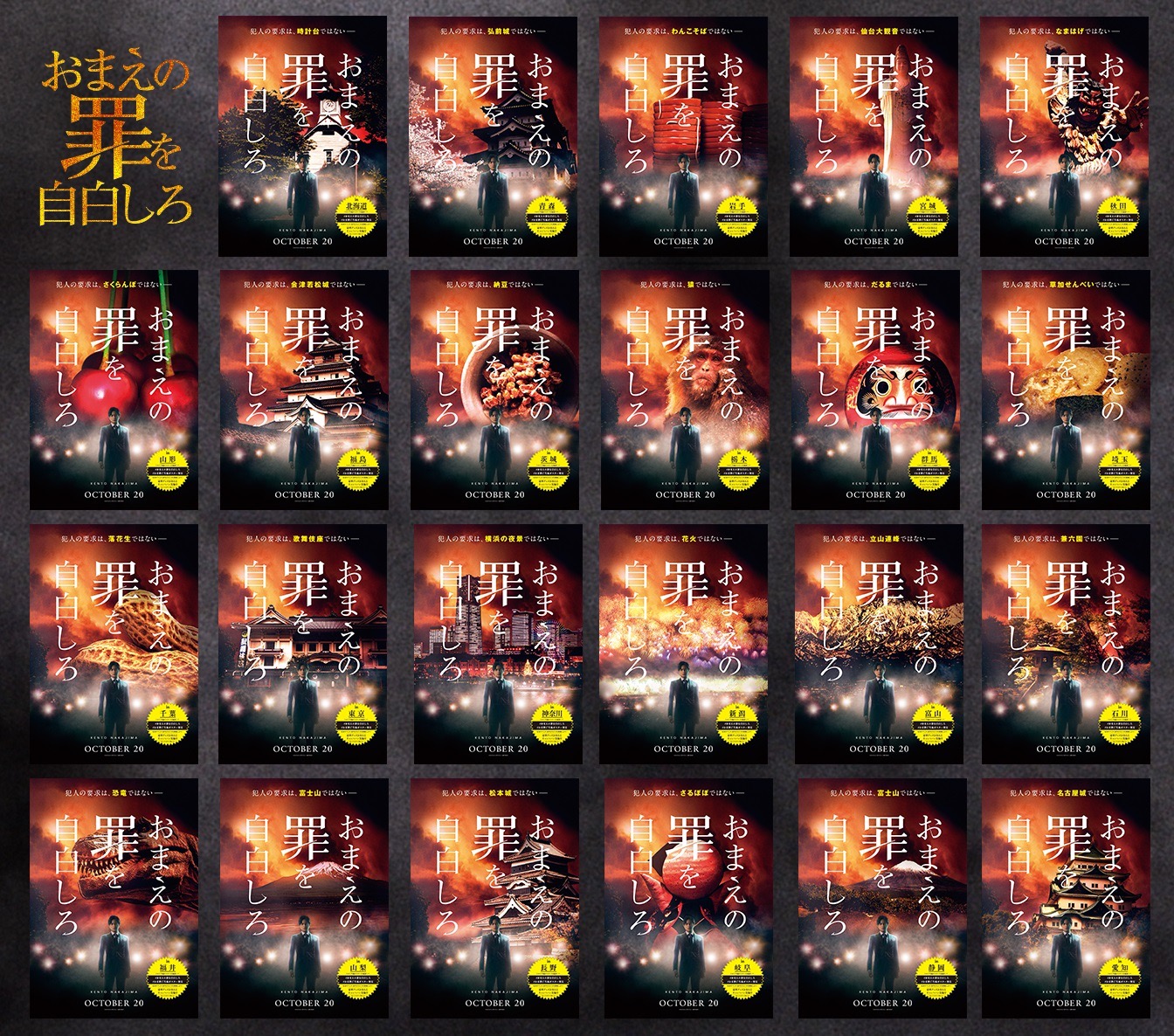 中島健人×堤真一の初タッグによる、映画『おまえの罪を自白しろ』が10月20日に公開。このたび中島健人が日本全国を席巻する特別企画として、ティザービジュアルに映し出された主人公・晄司の背景にそびえたつ国会議事堂が、全国47都道府県の名物に差し替わった<全国ご当地ポスター>47種のビジュアルが解禁された。