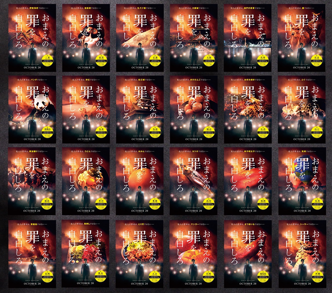 解禁となったのは、そんな晄司が立ち向かう存在として描かれていたはずの国会議事堂が、各地の名物に差し変わったご当地ポスター全47都道府県分。正規のビジュアルコピーである「犯人の要求は、身代金ではない―」が「犯人の要求は、〇〇ではない」とそれぞれの名物に差し替えられており、[松本城]が描かれた長野県、[だるま]が描かれた群馬県、[砂丘]が描かれた鳥取県など、名所や特産品、風景などご当地感が伝わるビジュアルをはじめ、中にはでかでかと[パンダ]が背後に鎮座する和歌山県や[馬刺し]が描かれた熊本県、[カツオ]が生き生きと跳ねる高知県、[恐竜]が迫り来る福井県など、シュールかつインパクトのあるビジュアルも。