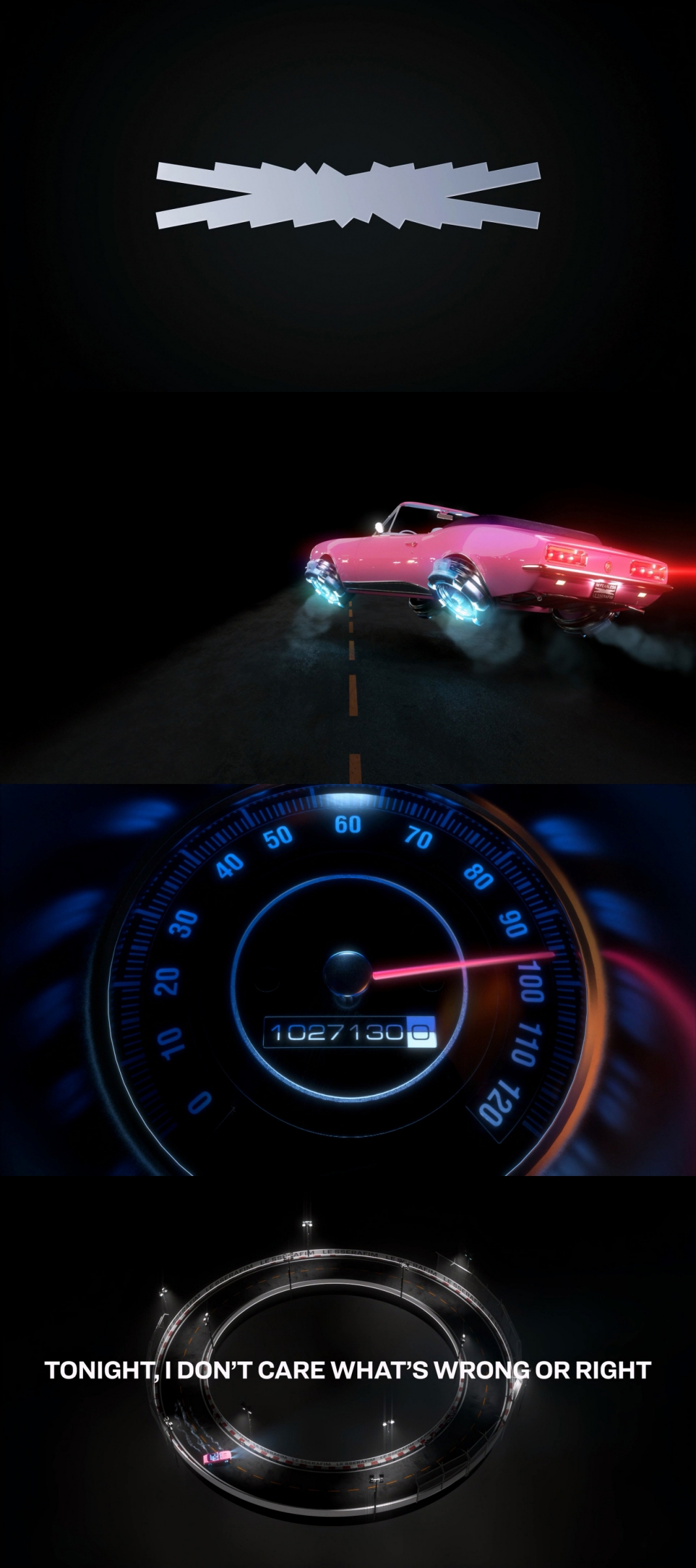 ピンク色のスポーツカーが疾走する様子が収められたこの動画の最後には、「TONIGHT, I DON’T CARE WHAT’S WRONG OR RIGHT」というメッセージが映し出され、ファンの間で話題となっていた。
