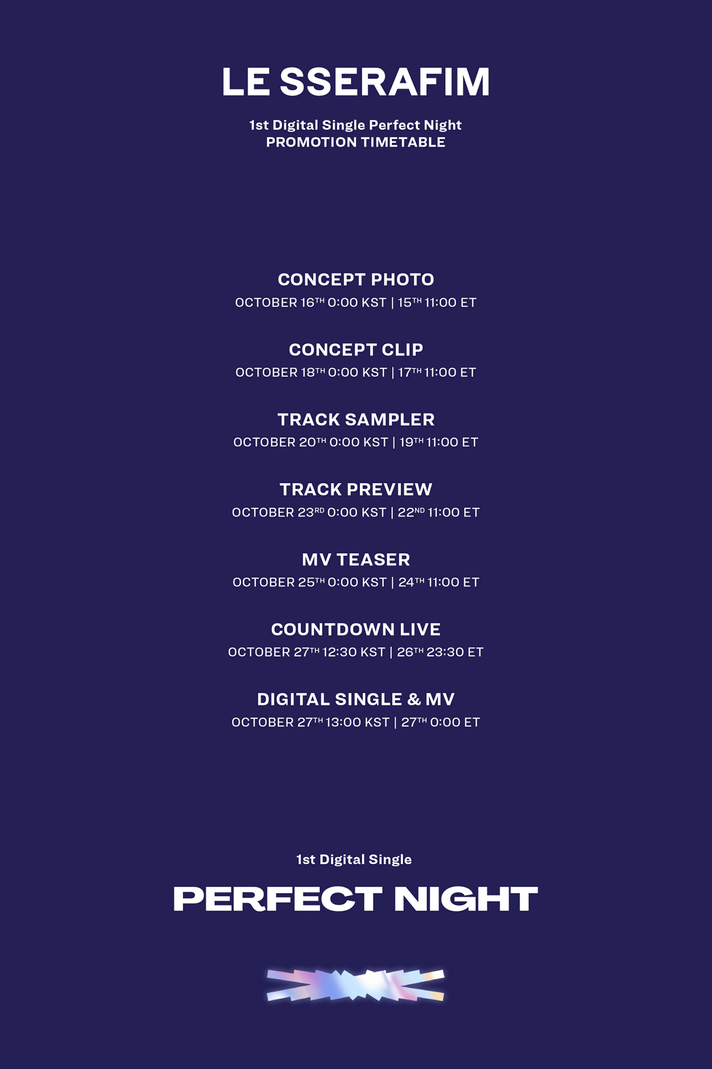 それによると10月16日に公開されるコンセプトフォトを皮切りに、18日にコンセプトクリップ、20日にトラックサンプラー、23日にトラックプレビューを順次解禁。そして25日に「Perfect Night」のMVティーザーが公開される。