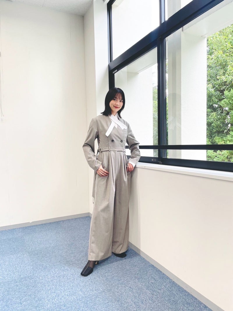 最後は「そして、髪を切った」と肩ほどの長さで外ハネくびれボブヘアスタイルに、ノーカラージャケットオールインワンに襟元が特徴的なシャツを合わせたメンズライクな衣装を着こなしたオフショットを複数枚公開し、ブログを締めくくった。