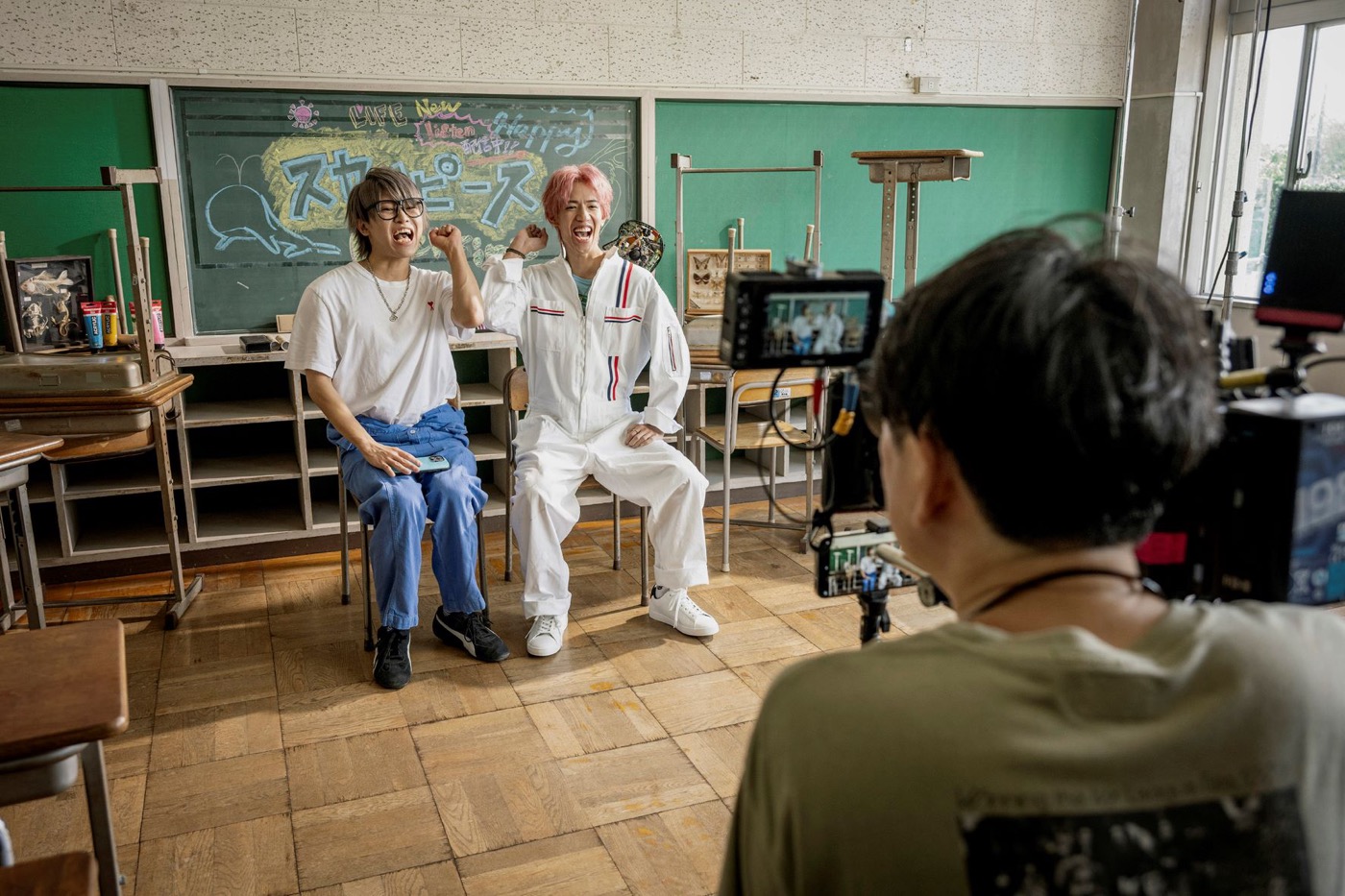 今回の出演について、☆イニ☆は「不慣れなドラマ撮影ではあるのですが、ウーチューバー役という事で、そのままの気持ちで挑みました!!! テオくんが渋滞で遅れて現場入りして、すぐに撮影に挑んでたのですが、入りから撮影終了までの時間が30分も無かったのが面白すぎました(笑)」と撮影時のエピソードをコメント。