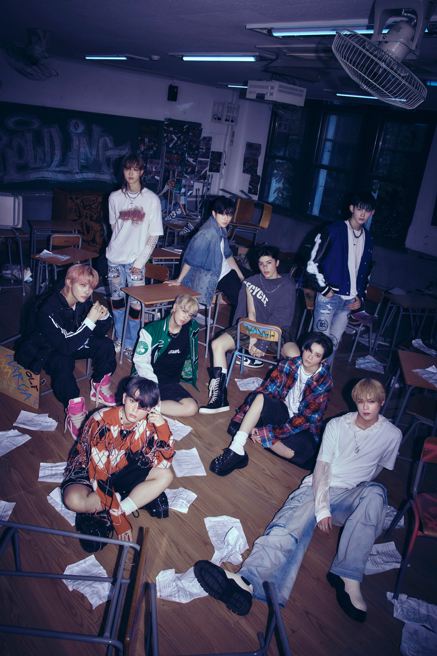 今回公開された「WILD」バージョンのコンセプトフォトでは、夜の廃校舎を舞台に、仲間とともに怖いもの知らずな表情を浮かべ、まだどこか自分たちのテリトリーのなかにいながらも、ともに夢見る未来へ冒険を始める準備ができているという大胆な雰囲気を帯びた9人の姿が映し出されている。