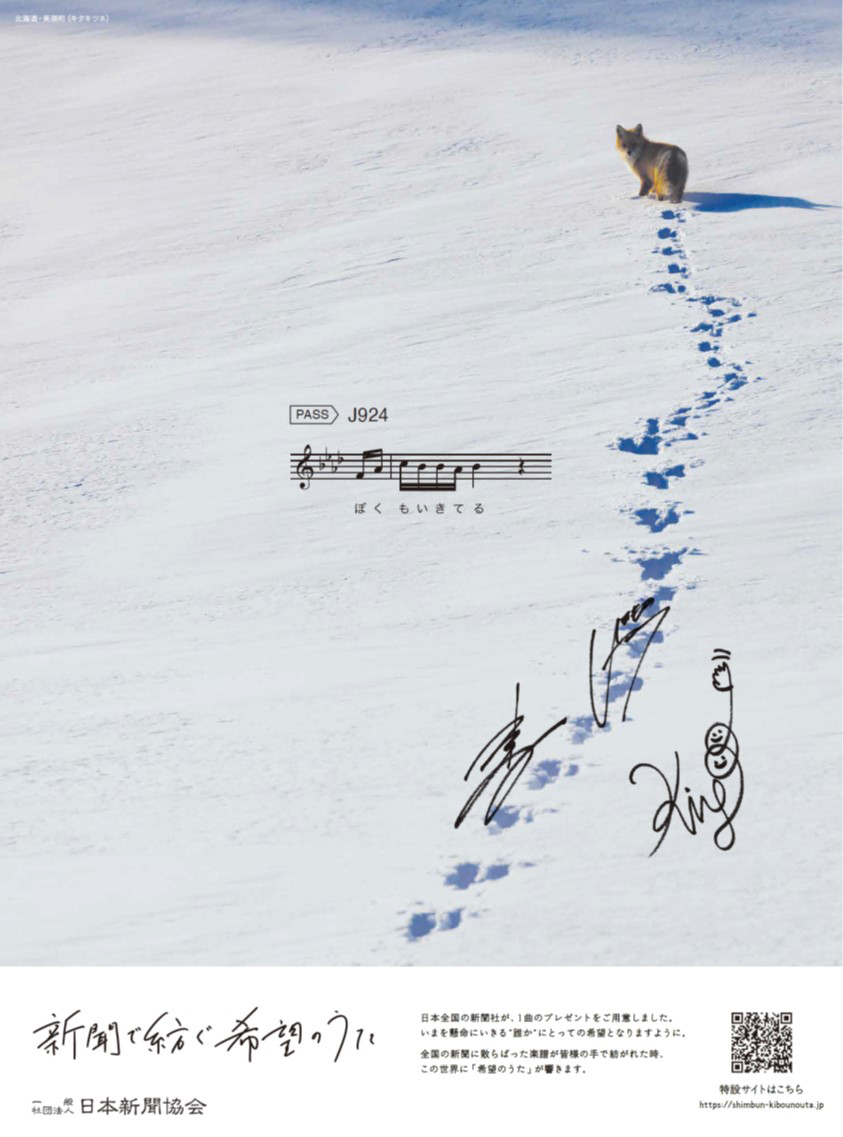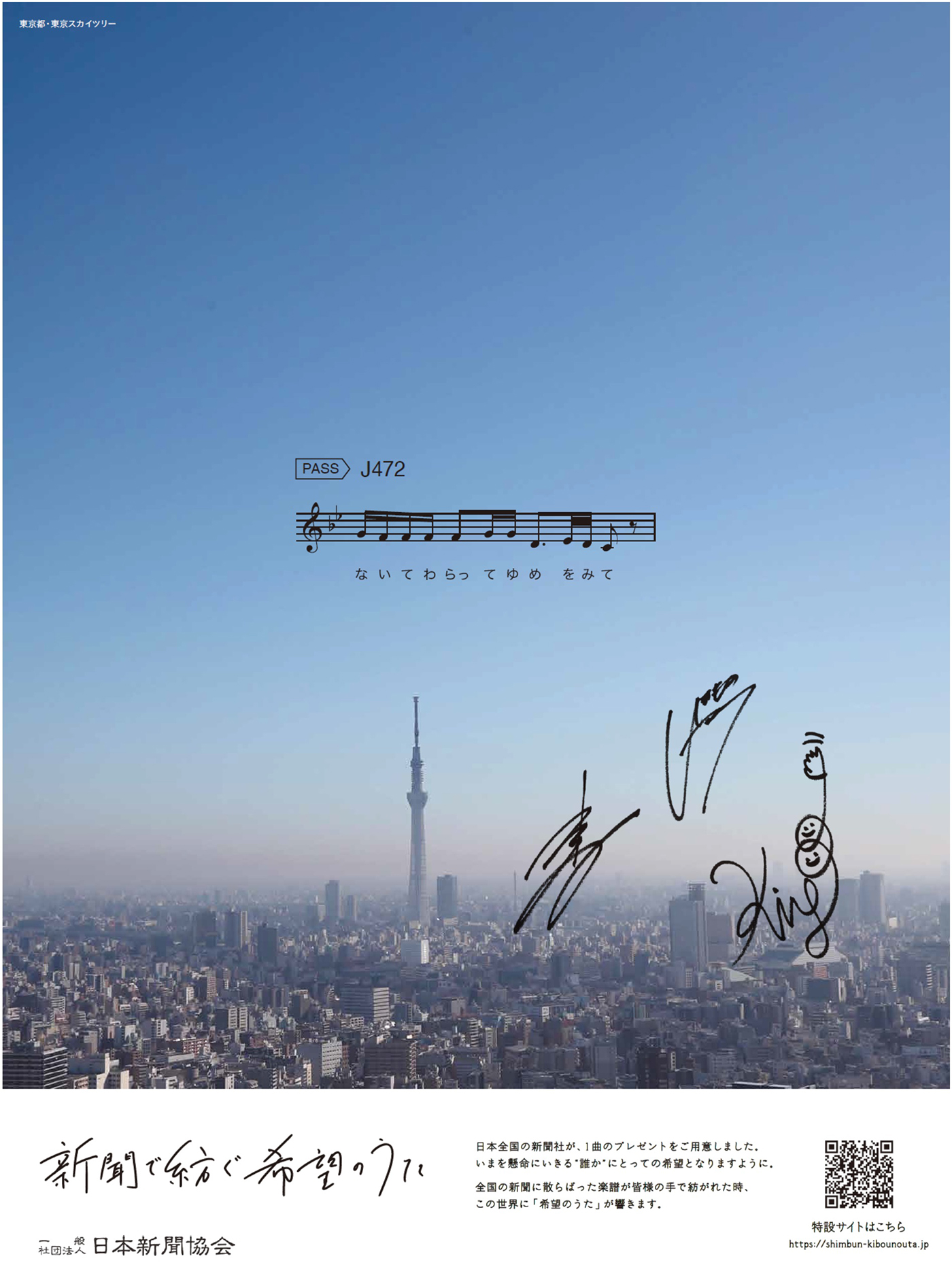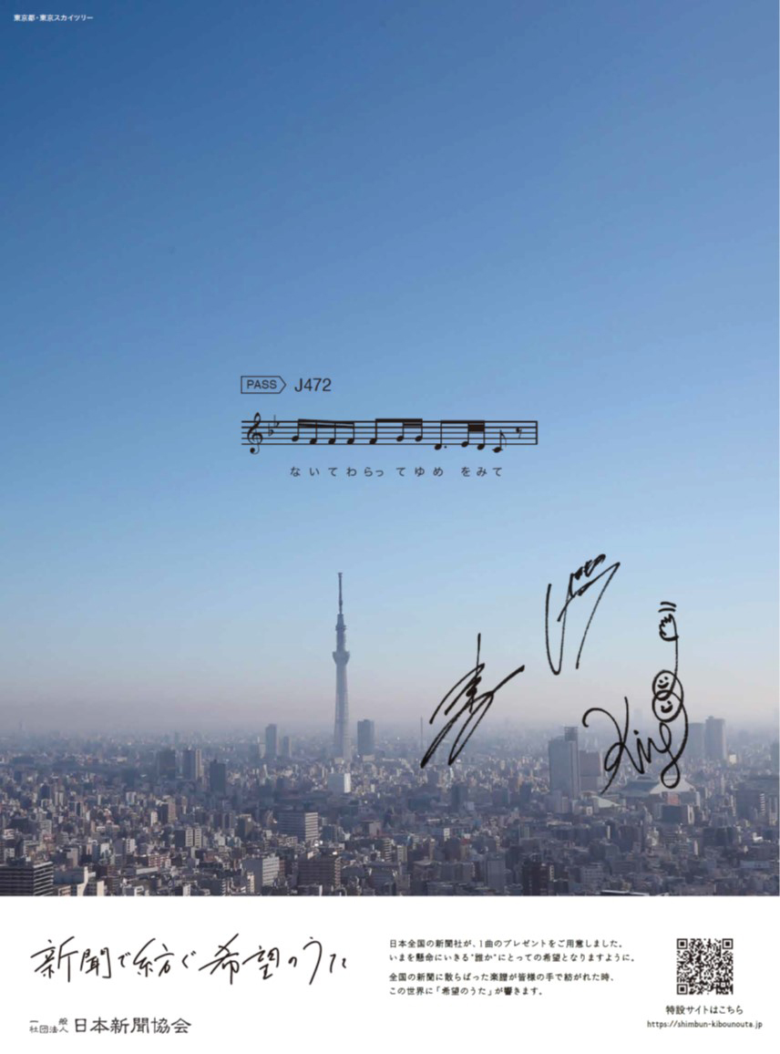 「新聞で紡ぐ希望のうた(新聞広告統一PRキャンペーン)」は、10月20日の「新聞広告の日」に合わせて日本新聞協会広告委員会が実施したもの。