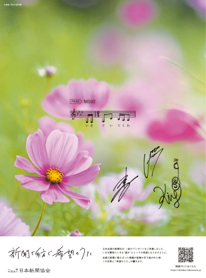 いまを生きるすべての人へ、全国の新聞社から“希望のうた”を贈るプロジェクトで、パートナーアーティストであるいきものがかりが新曲を制作した。