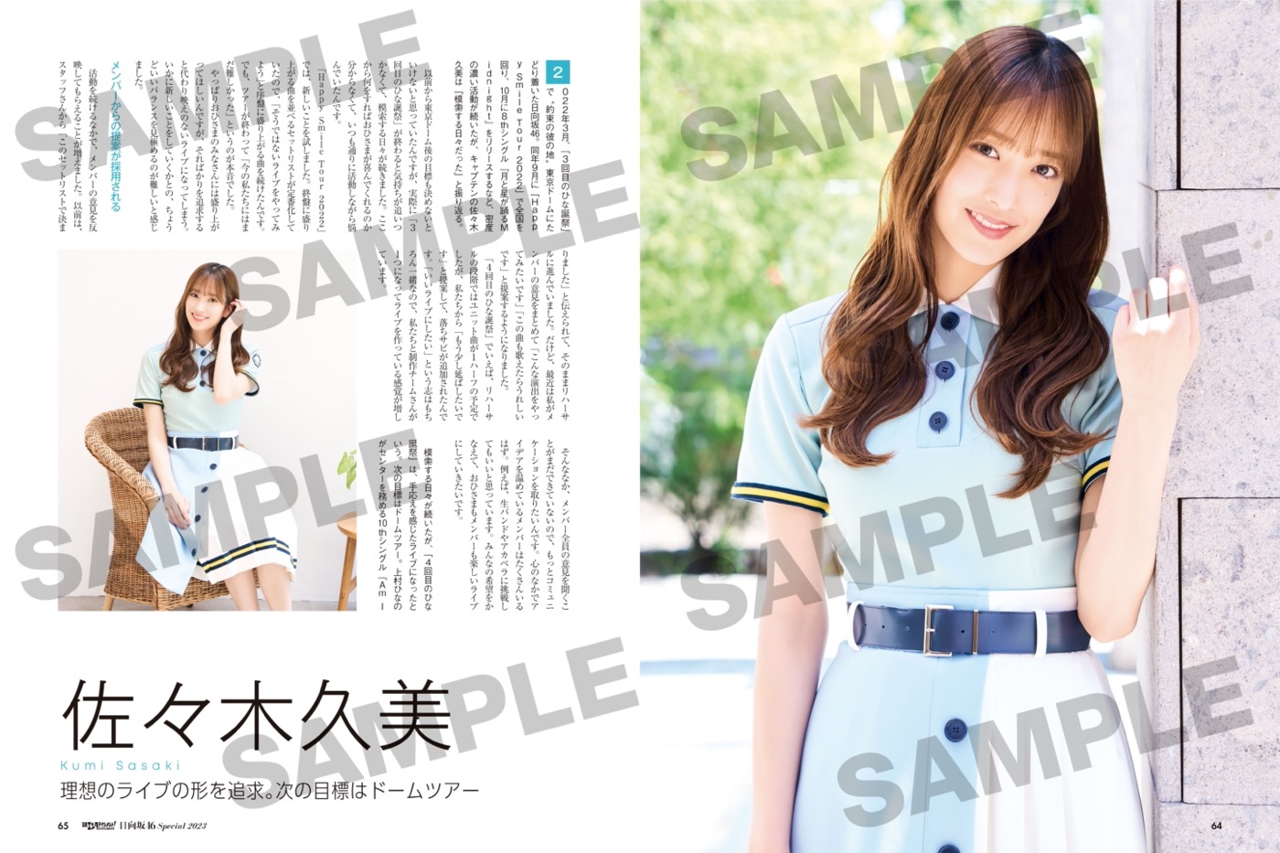 10thシングル「Am I ready?」で初の表題シングルセンターを務めた三期生・上村ひなのはこの楽曲にかける意気込みや後輩から受けた刺激を語り、二期生・小坂菜緒は4月の『4回目のひな誕祭』のステージで感じたことをコメント、また、2ndアルバムリード曲「君は0から1になれ」でセンターに立つ一期生のキャプテン・佐々木久美は、東京ドーム公演後の目標を模索する前向きな気持ちを明かす。近年の活動の振り返りや、将来の夢など、パーソナルな思いや魅力が満載だ。