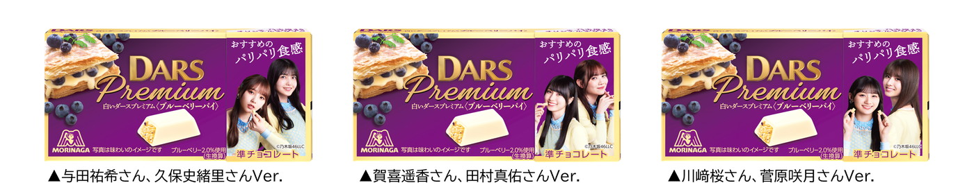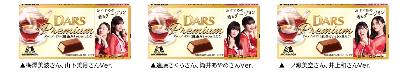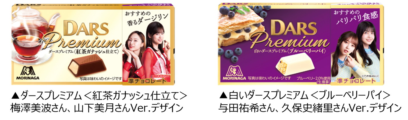 また、「ダースプレミアム」の新商品「紅茶ガナッシュ仕立て」「ブルーベリーパイ」2種が、乃木坂46のアンバサダーメンバーがパッケージに印刷された限定デザインで11月21日より発売。コラボパッケージデザインは全6種で、各フレーバー3種の展開となる。