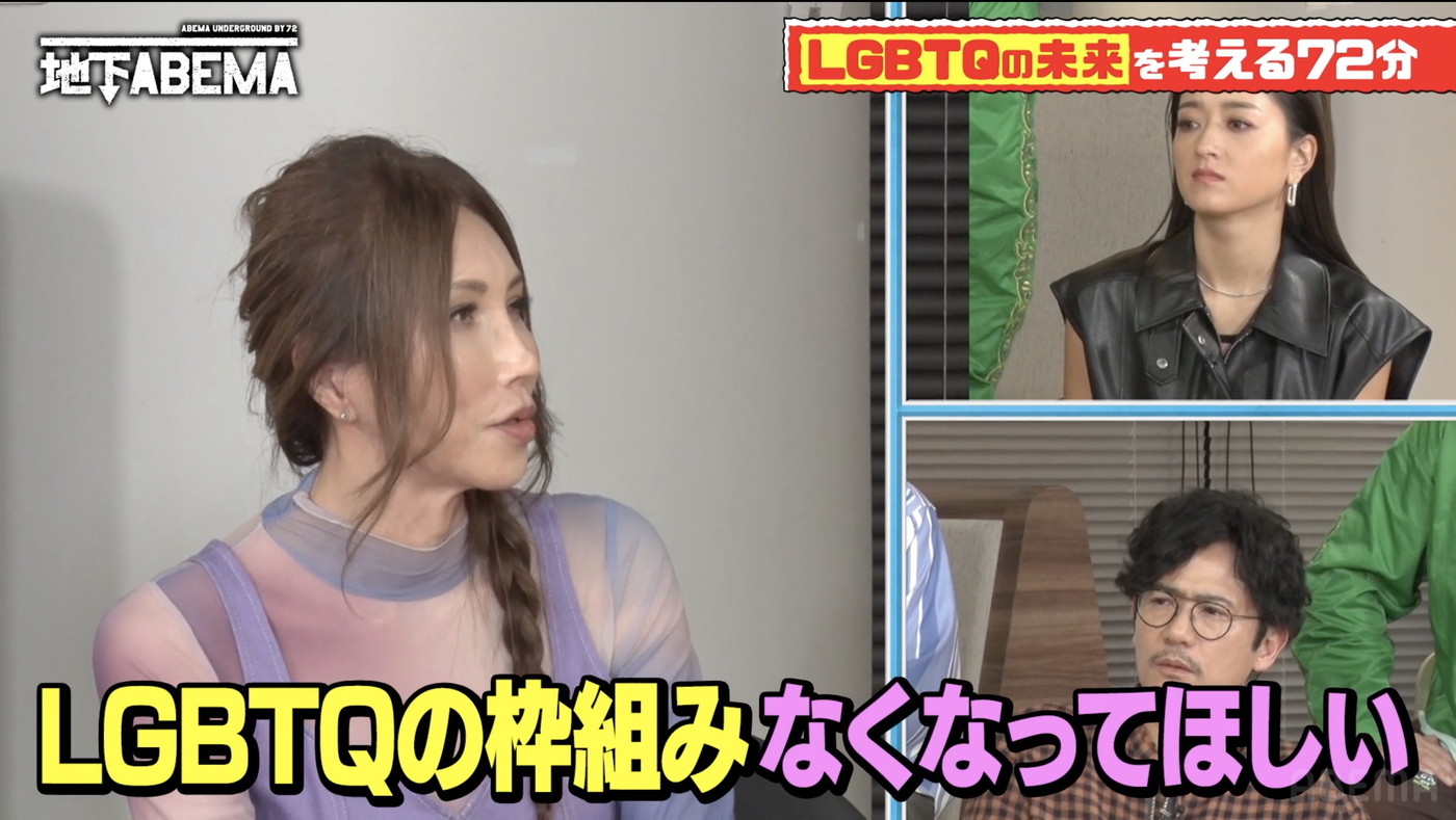 番組の最後には、ゲストがそれぞれLGBTQに対する想いを口にする様子も。はるなは「LGBTQって言葉、今は過渡期だから仕方がないのだけど、(いずれは)なくなってほしい」「テレビでのはるな愛のキャラクターは、私へのいじりなので他の人に押し付けないでほしいし、私もどんどんいじってほしいし」「ただ、テレビ出たくない人もいるんですよ。いろんな人がいるってこともわかってほしい」とコメント。GENKING.は「10代、20代の友達やおしゃれで人気な方はゲイ、トランスジェンダーを公表していたり、“性別とかどうでもよくない?”って発信していたりしている」「若い子は受け入れている、受け入れ難い世代の人は30代から上かなって」と口にし、「自分が大人になって思うのは、小さいときから周りが(LGBTQに)理解があって、ホルモン治療とかも若い頃からやっていたら違ったのかなとか」「これからの10代の小さい子は未来が拓けていくな」と、10代、20代の若い世代の考えや自身の苦悩を述べた。トリを飾るKABA.ちゃんは「全部言われちゃったから、特にないんですけど」と口にし、笑いを誘うも「LGBTQって枠組みがなくなってほしいなって、そういう社会になればいいな」と語った。