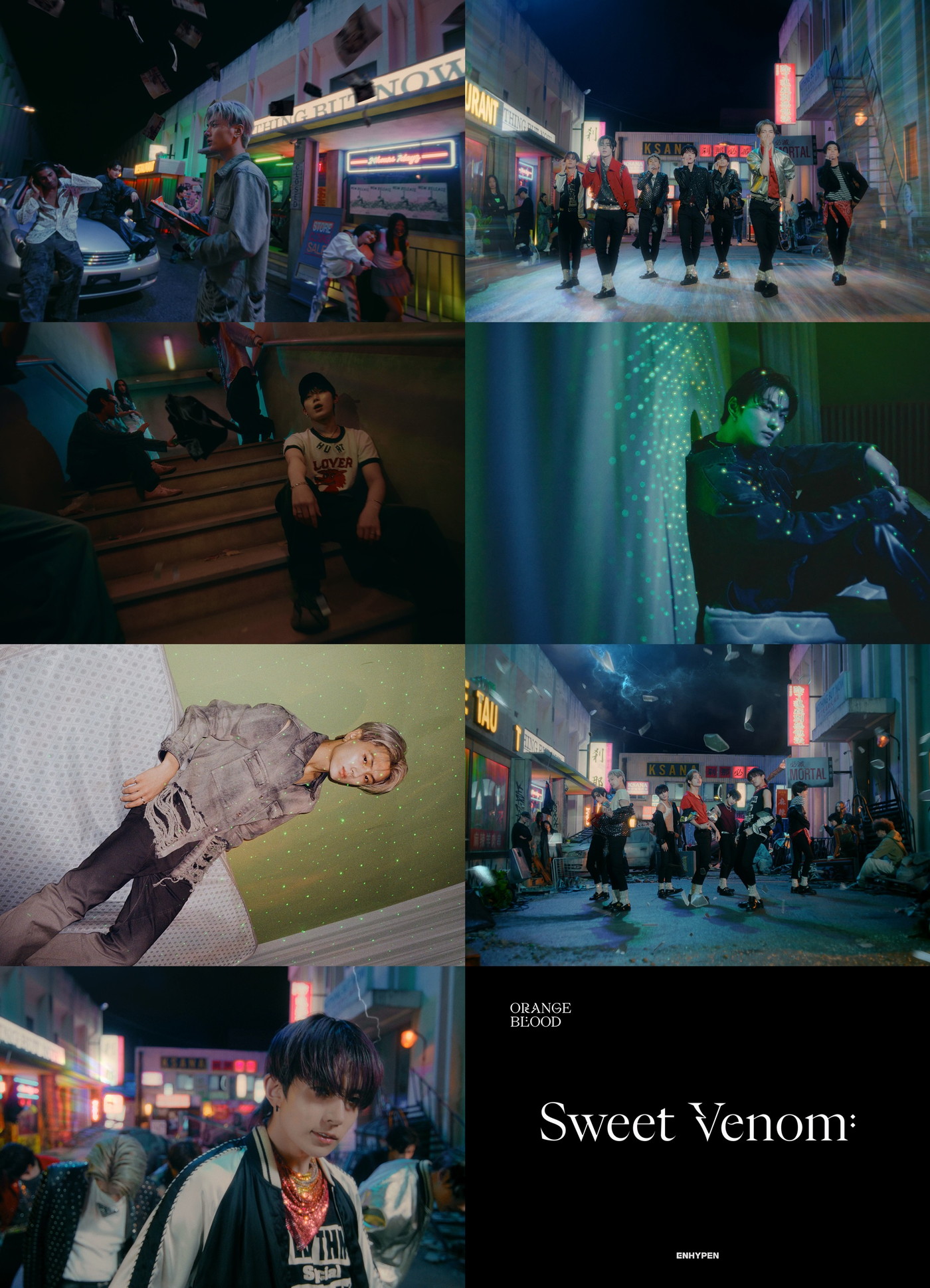 11月17日14時、全世界同時リリースとなった5thミニアルバム『ORANGE BLOOD』。「Sweet Venom」のMVでは、マネキンのようにじっと立っている人物を撮影する“マネキンチャレンジ”を活用するなど、既存のK-POPのMVではあまり見られなかった独特な構成で斬新さを加えた。時間が止まった空間に閉じ込められたENHYPENの姿を通じて、少年の永続性を隠喩的に表現している。