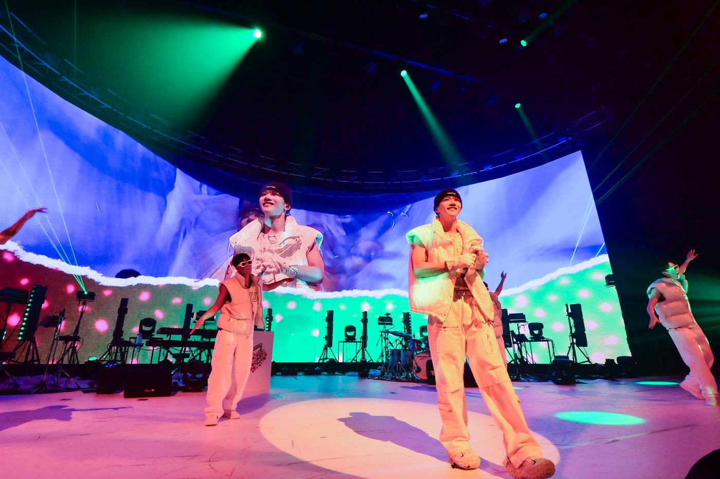 MVを彷彿させるような映像をバックに、力強いダンスを魅せつけるJun. K。ステージで踊るJun. Kとダンサーがリアルタイムに背景のビジョンにも映し出され、MVのオリジナリティあふれる世界を再現し、ファンをその世界に飲み込んだ。独特の世界観と、圧倒的な生の歌声とパフォーマンスでファンを歓喜させた。