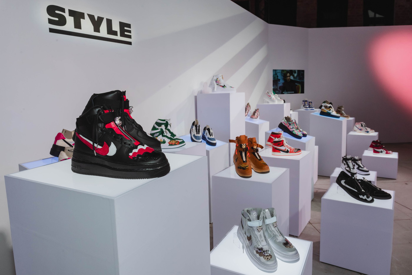 そして、前回は NIKEのスニーカーをリメイクして展示しましたが、今回は表参道で展示した四倍以上の数のリメイクスニーカーを作成しました。