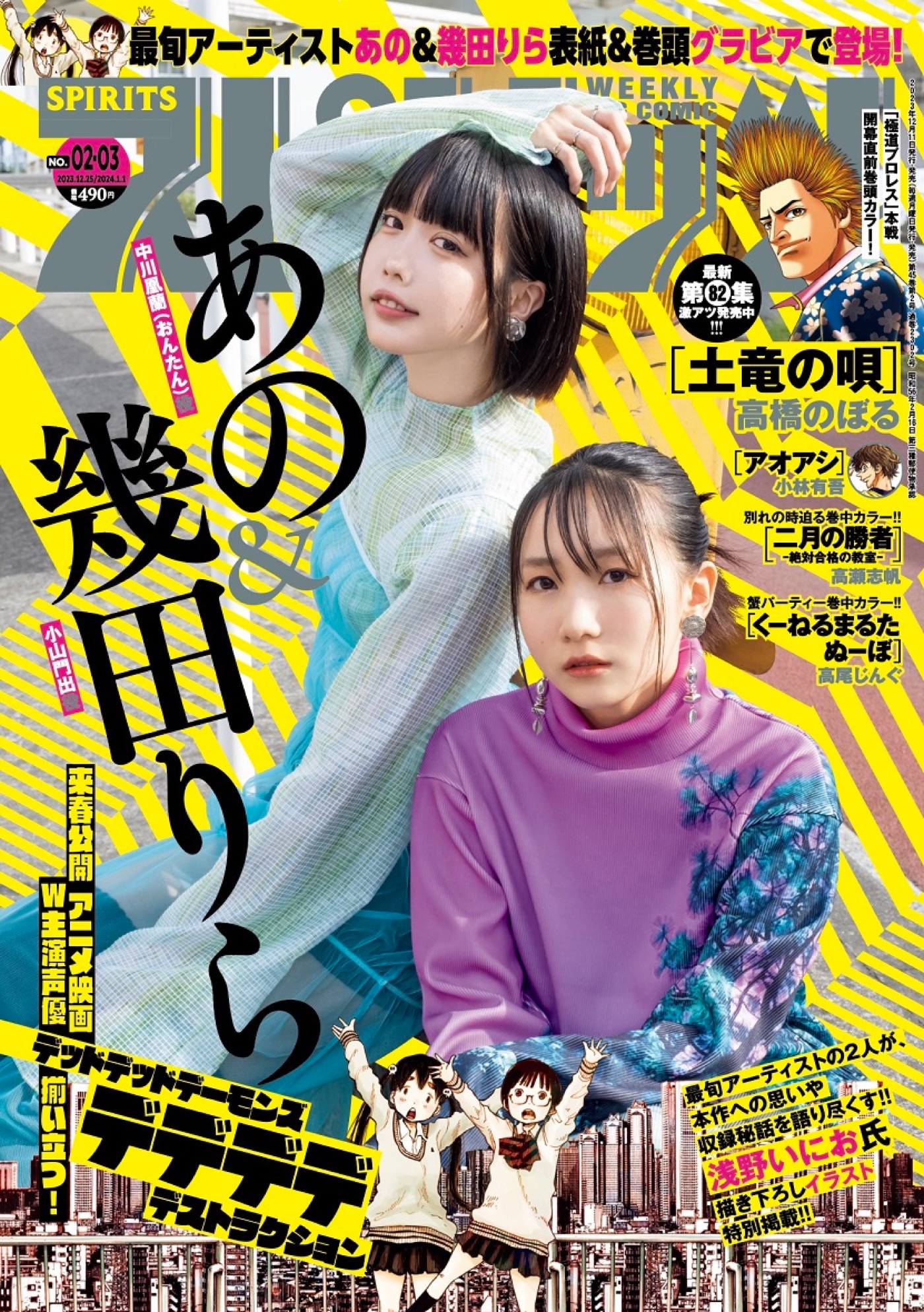映画『デッドデッドデーモンズデデデデデストラクション』でW主演キャスト声優を務めるあのと幾田りらが、『週刊ビッグコミックスピリッツ』2・3合併号(12月11日発売)の表紙&巻頭カラーグラビア(6P)に登場する。