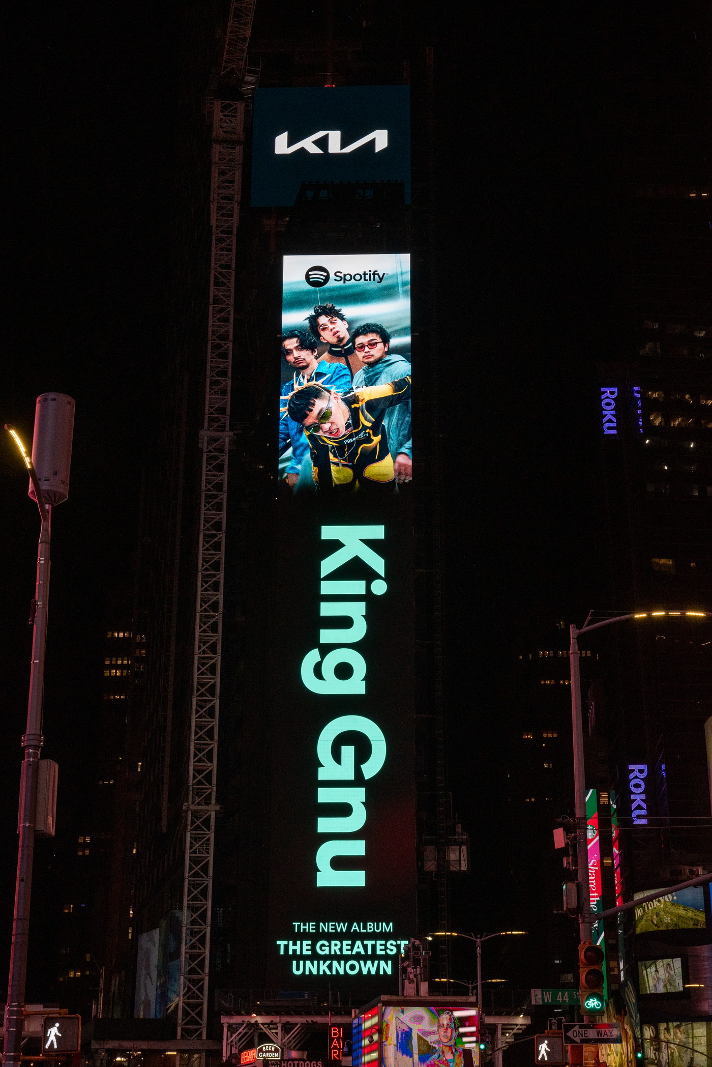 King Gnuを起用したSpotifyの巨大街頭広告が、ニューヨーク・タイムズスクエアに登場した。