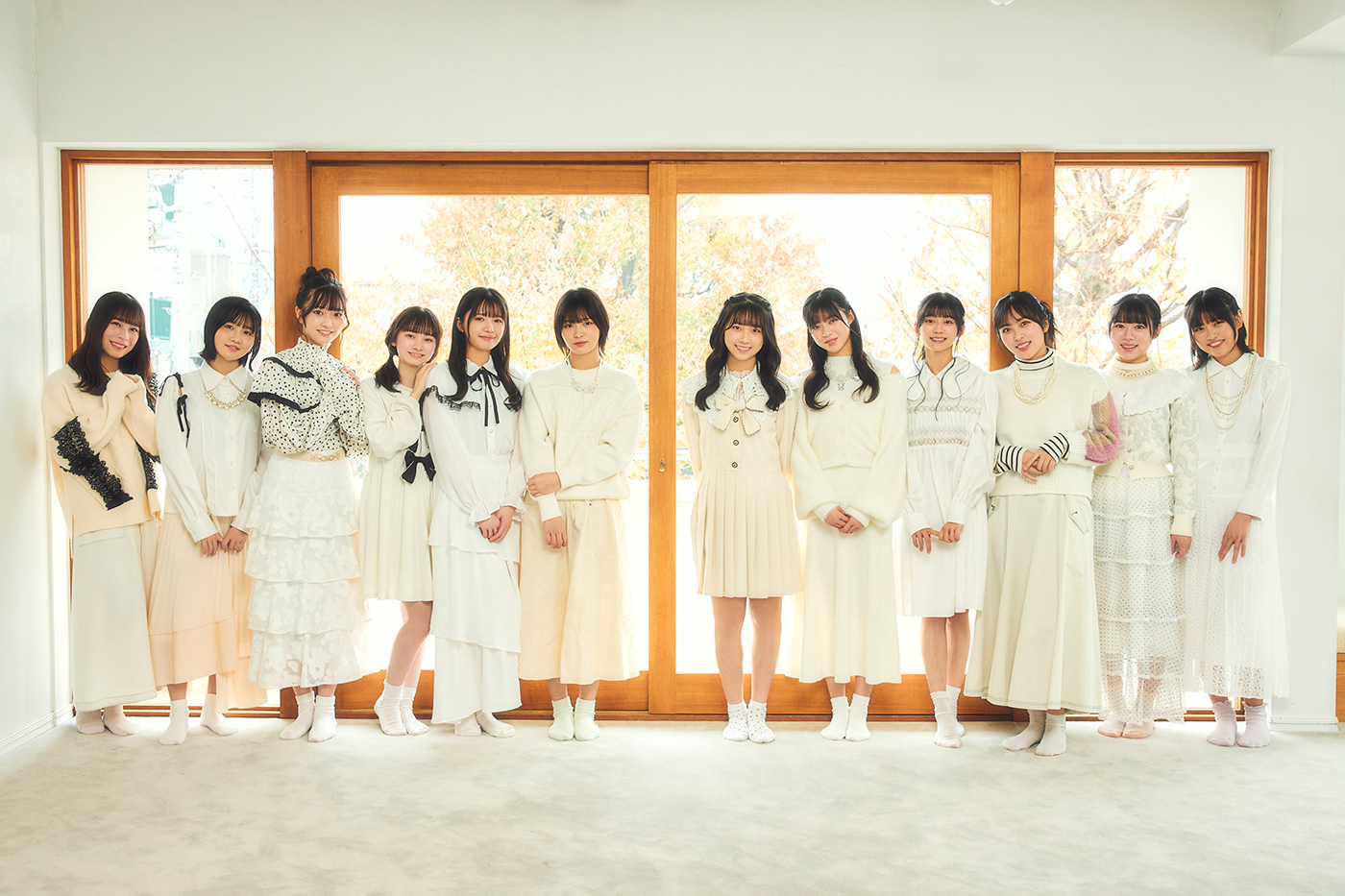 グラビアでは、白い空間で白い衣装を身に纏った彼女たちを柔らかな雰囲気で撮影。和気あいあいとおしゃべりを楽しんだり、背の順を比べ合ったりと、≒JOYの自然な空気感を切り取った。