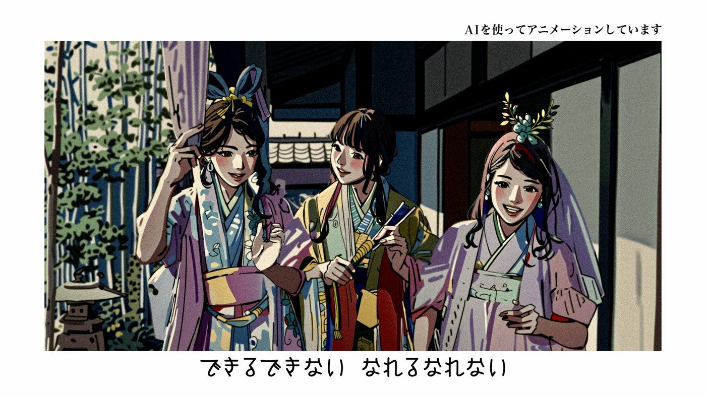 生成AIでCMを作ることは“実験”とも言える挑戦だった。AIに読み込ませたのは、1秒間あたり12フレームにまで分解した三太郎のCM映像と、イラストレーターの松本ぼっくりの200枚以上のイラスト。フレームごとにAIがアニメーション化するので、三太郎の衣装の柄や表情もフレームごとに異なる。そのような生成AIの良さを活用しながら、何回も検証や試行錯誤を重ね、ひとつの作品となった。