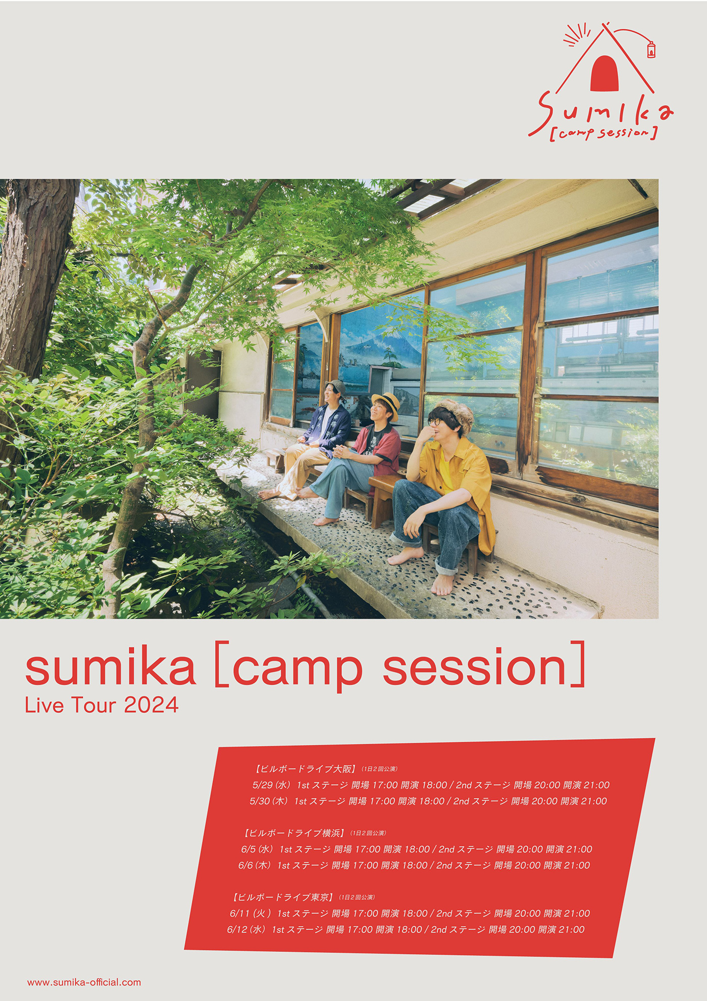 sumikaが約7年ぶりにビルボードライブにカムバック。アコースティック編成名義であるsumika[camp session]で、『sumika[camp session] Live Tour 2024』を開催する。