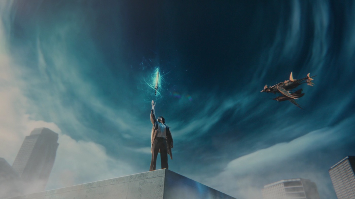北村匠海は、ゲームの世界の主人公をイメージした役で登場。空に浮かぶ、『リリンク』に登場する武器「エオスブレード」に手を伸ばす北村。すると、普段どおりの街に変化が。教室にいる女子高生や仕事中のサラリーマン、カフェでお茶を楽しむカップルの目の前に、突如様々な武器が現れる。エオスブレードを掴み、空を見上げる北村。女子高生やサラリーマンたちもワクワクした表情で、光を放つ武器を手に取る。勢いよく走り出した北村の後ろには、同じく冒険の世界に飛び込もうとする、大勢の人の姿が。先頭を走る北村がエオスブレードを空に掲げ叫び、いざ、『リリンク』の世界へ進んでいく。