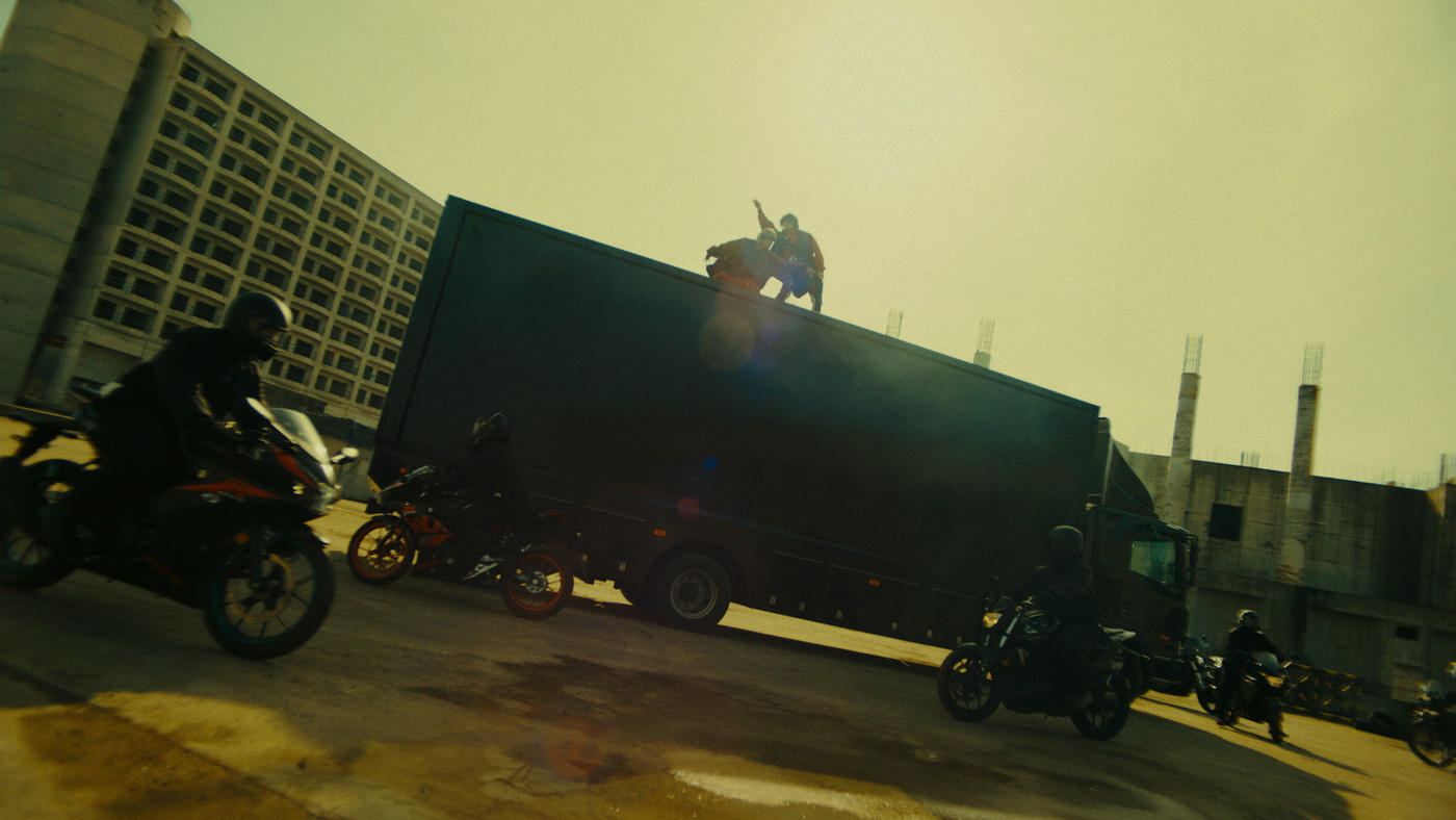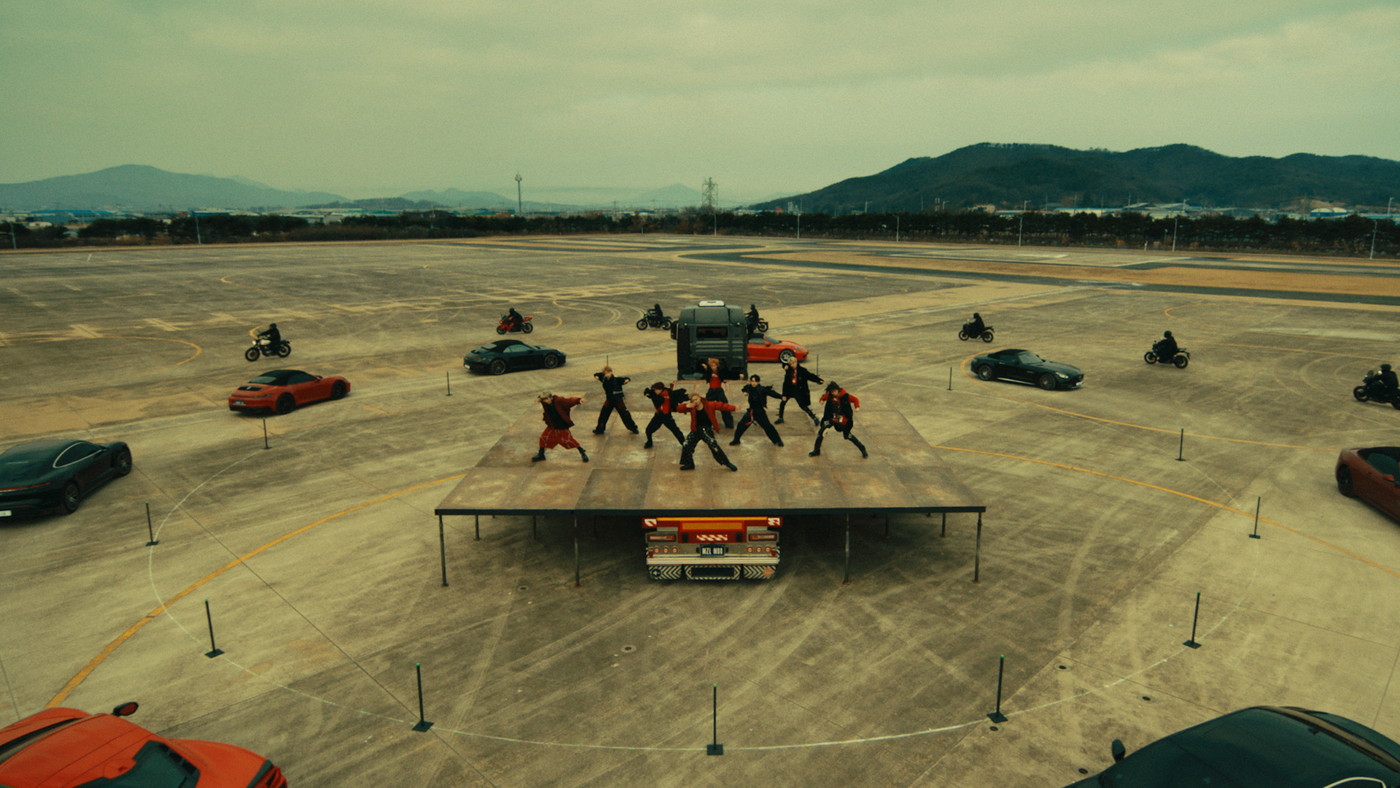 今回のMVは、MAZZELのダイナミックなダンスと、トラックやスポーツカーやバイクなど31台によるカースタントが融合した「カースタントダンスMV」に。
