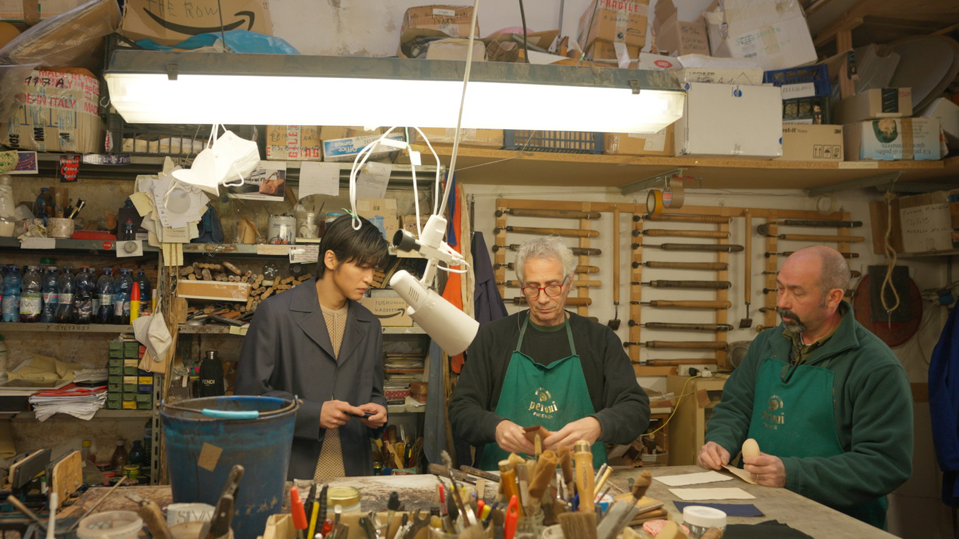 フィレンツェでは、スーツ職人と革製品職人の元へ行き、真の職人のクラフトマンシップに感銘を受け、心を揺さぶられた。