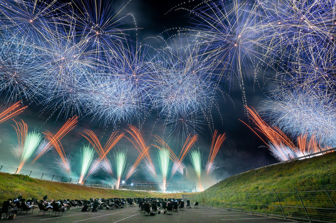 会場の富士スピードウェイに居合わせた皆で、そして、来場出来なくてもヴァーチャル空間を通じて集ってきた皆で、同じ夜空の花火=星を見上げながら世界中の人たちの願いや祈りに想いを馳せるこの瞬間、このひとときが、素晴らしい未来への一筋の光となりますように。