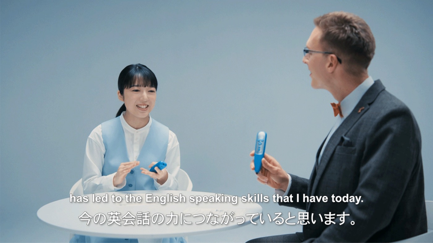 ■厚切りジェイソンによる「あのフレーズ」をもじったひと言を交えながら、上白石がKUMONの英語学習の特長を紹介