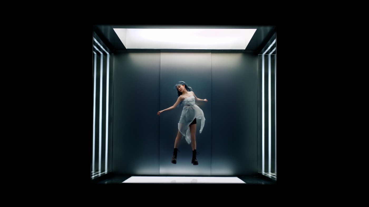 無機質で近未来的なボックスの中に浮遊する宮脇咲良。荘厳なクラシック音楽とビートミュージックが融合したBGMが流れ出すと、ブルーの美しいロングヘアを自由自在に操る。モノクロ映像が組み合わされたスタイリッシュな映像表現で宮脇咲良のパフォーマンスが際立ち、まるでSF映画のワンシーンのような仕上がりに。