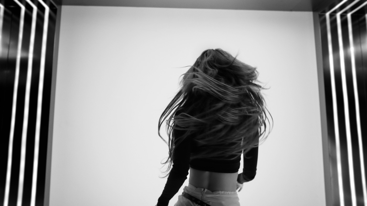 ■ステージ上でのパフォーマンスのように力強く、重力を感じさせないほど自由自在に髪を操る宮脇咲良をあらゆる角度から捉えた映像