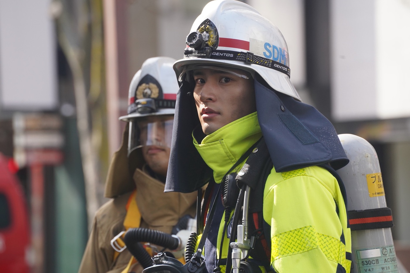 ■強風が吹き荒れる火災現場で、山下智久演じる晴原率いるSDMメンバーが決死の人命救助!