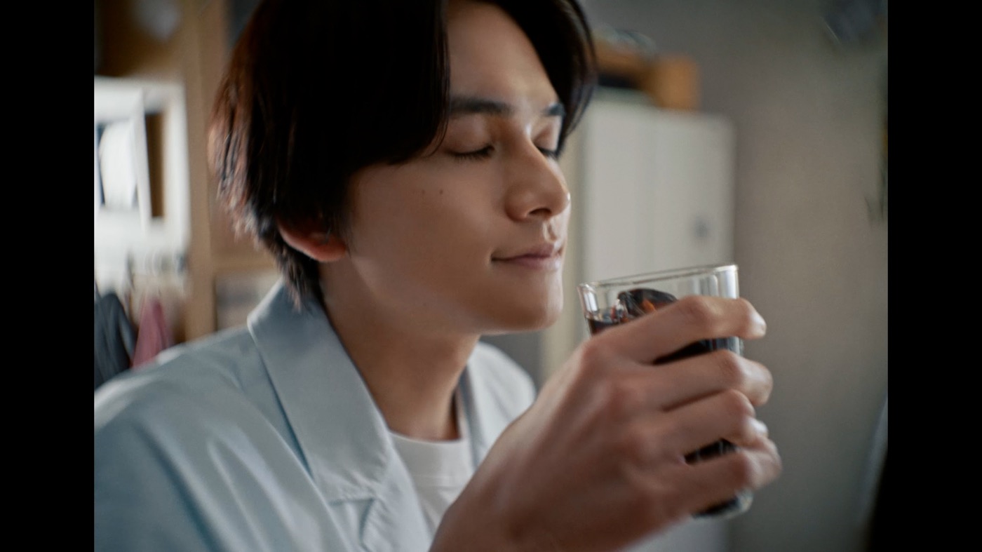 この夏、“ネスカフェエクセラボトルコーヒー”で提案するのは、豊かな香りとすっきりとした後味のコーヒーを楽しんで、リフレッシュするひととき。CMでは自宅でリラックスタイムを過ごす北村匠海が、庭でアイスコーヒーを飲みながら読書をしようと思いつくところから始まる。“ネスカフェエクセラボトルコーヒー”を冷蔵庫から取り出し、氷の入ったグラスに注ぎ、風が吹く爽やかな庭にやって来る。鳥のさえずりや風鈴の音、氷の入ったグラスにコーヒーが注がれて氷がカランと音を立てて溶ける音など季節感を感じることができる。北村がそれらの音や香りを楽しみながら、おいしそうにコーヒーを飲む様子が印象的な仕上がりとなっている。