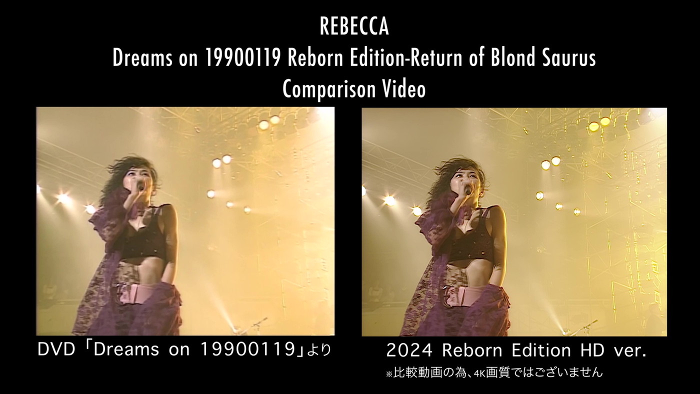REBECCAが1990年1月19日に日本武道館にて開催した、活動休止前ラストライブとなる『REBECCA LIVE TOUR ’89-’90 Return of Blond Saurus』最終公演。今回、本公演の映像が再編集され、REBECCA初のUHD-BDとして発売されることとなった。