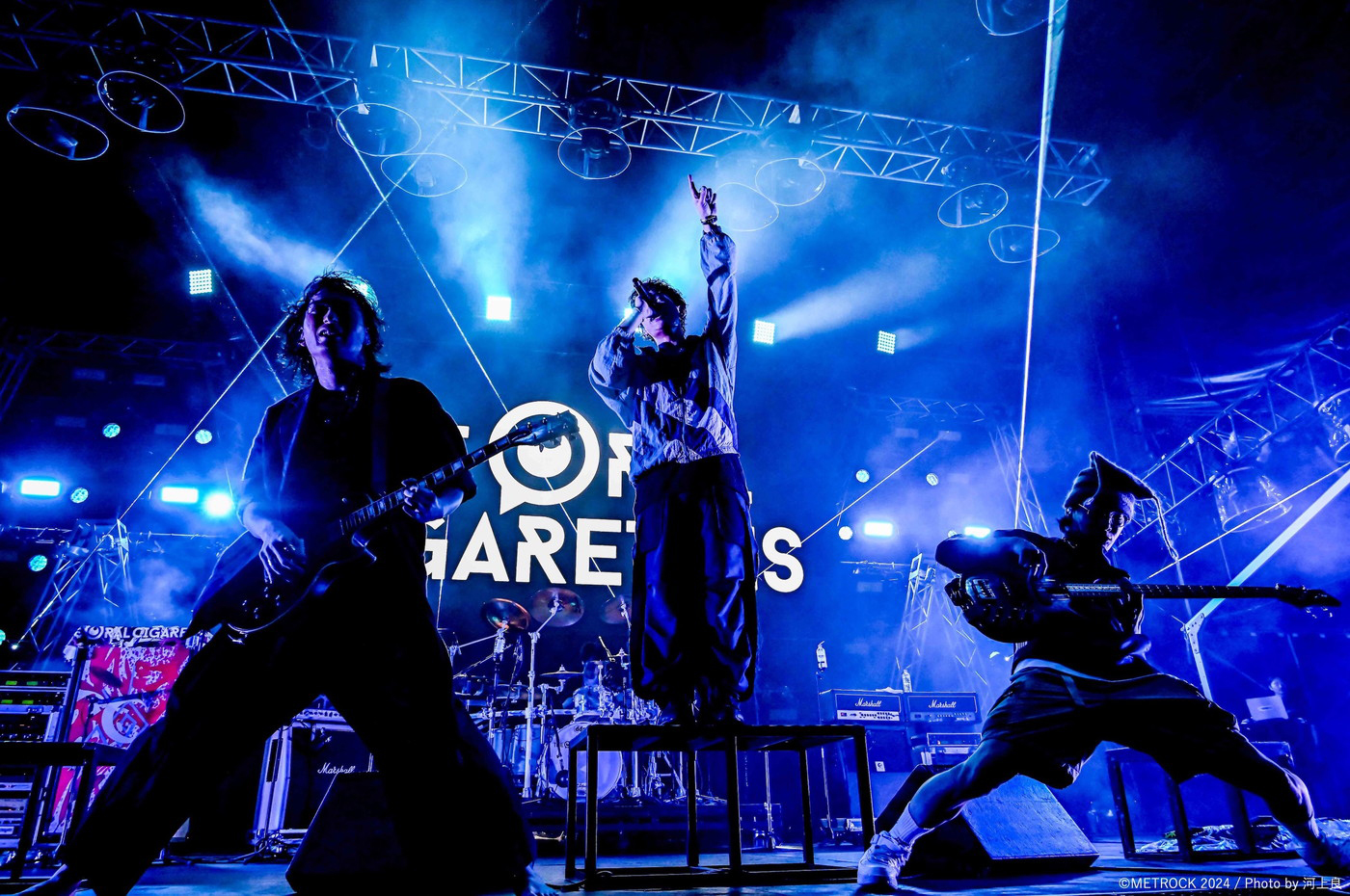 そしてライブを“禊”、観客を“参拝者”と呼称する、唯一無二の世界観で人気を博す3ピースバンドの-真天地開闢集団-ジグザグのSEASIDE PARKステージの様子も生中継。1曲目の「復讐は正義」では、心待ちにしていた超満員の参拝者に命(Vo、Gu)が「メトロック東京、待たせたな! 盛り上がっていこうぜ、楽しもうぜ!」と呼びかけ、一気に会場のボルテージを高めた。