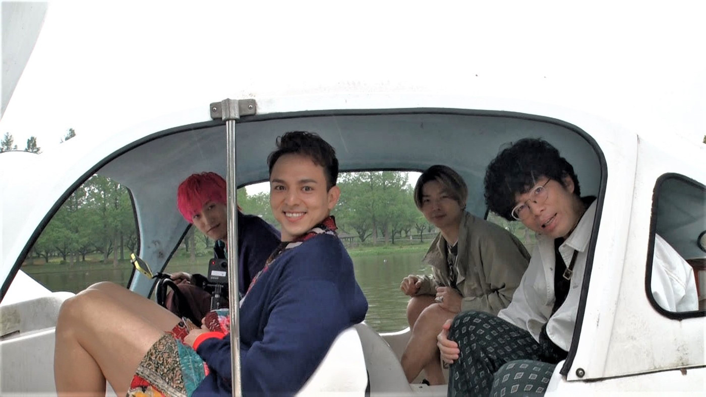 公園の係の人の厚意で開業時間前にもかかわらずスワンボートに乗せてもらえることになった4人。男4人でスワンボートに乗り込んでペダルの漕ぎ方にもそれぞれの個性を反映させながらタイトルコールでメシドラスタート。