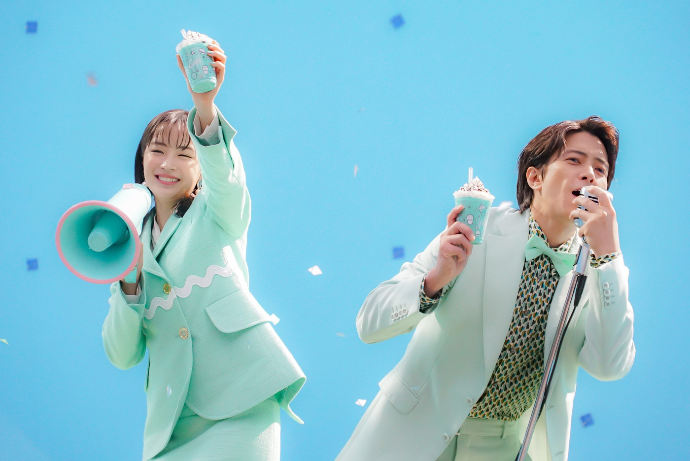 ◇広瀬と山下が爽やかなミントカラーの衣装で登場