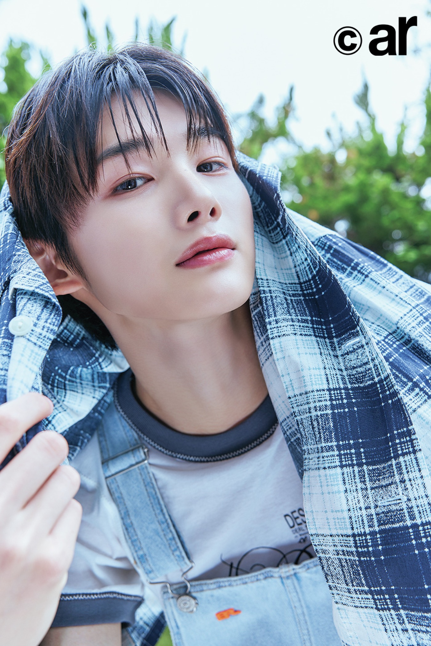 「ブルーは僕的に落ち着く色。僕はブルーのヘッドフォンを愛用中。ar読者の方なら、ワンピースやシャツとか大きくブルーを使ったファッションも目を引きそうですね」と青に関する質問や、ここでしか見られないプライベートな素顔が覗けるクエスチョンも満載だ。